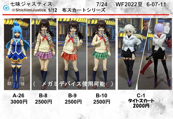 shichimijustice.booth.pm お待たせしました、七味工房再開します。布スカート他に友人の委託商品も販売します 神粋さんとNekoくんのキットは一人一個に制限させて頂きます よろしくします🙂 #メガミデバイス #figma