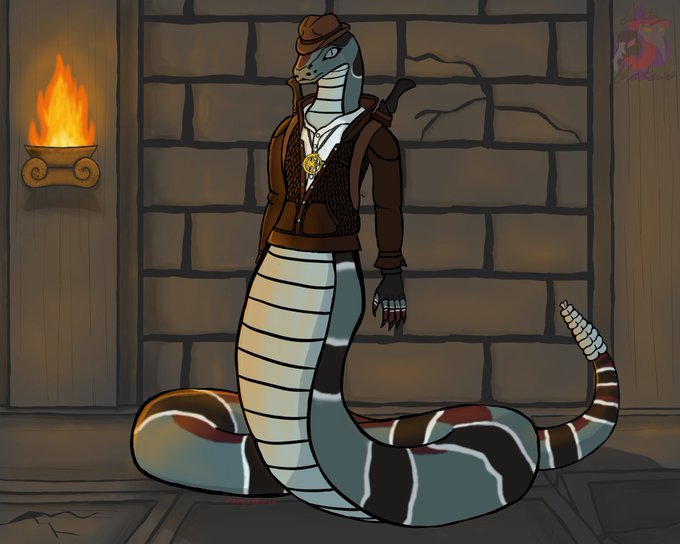 1 5 New character! Cherri Bloodwell the treasure hunter She's a hybrid between and banded rock and a pygmy rattlesnake #art #digitalart #DnDcharacter #Snake #characterdesign #dndart #DigitalArtist 22/10/02 04:32