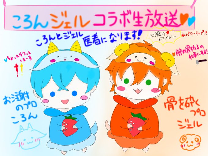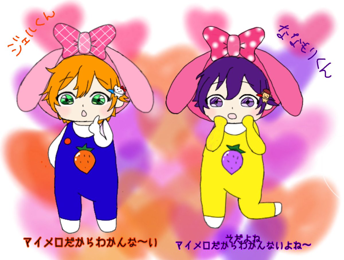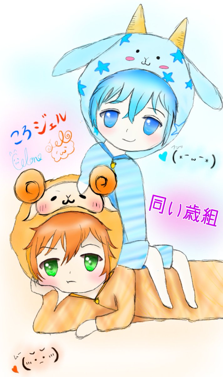 同い歳組(ころジェル)🧡💙 パジャマ姿のイラスト可愛すぎて描いてしまた🤦♀️ この2人の絡みが大好きです!!! また、コラボしてくれるの待ってます!!(*´ ꒳ `*) #すとぷりギャラリー #ころんくん #ジェルくん