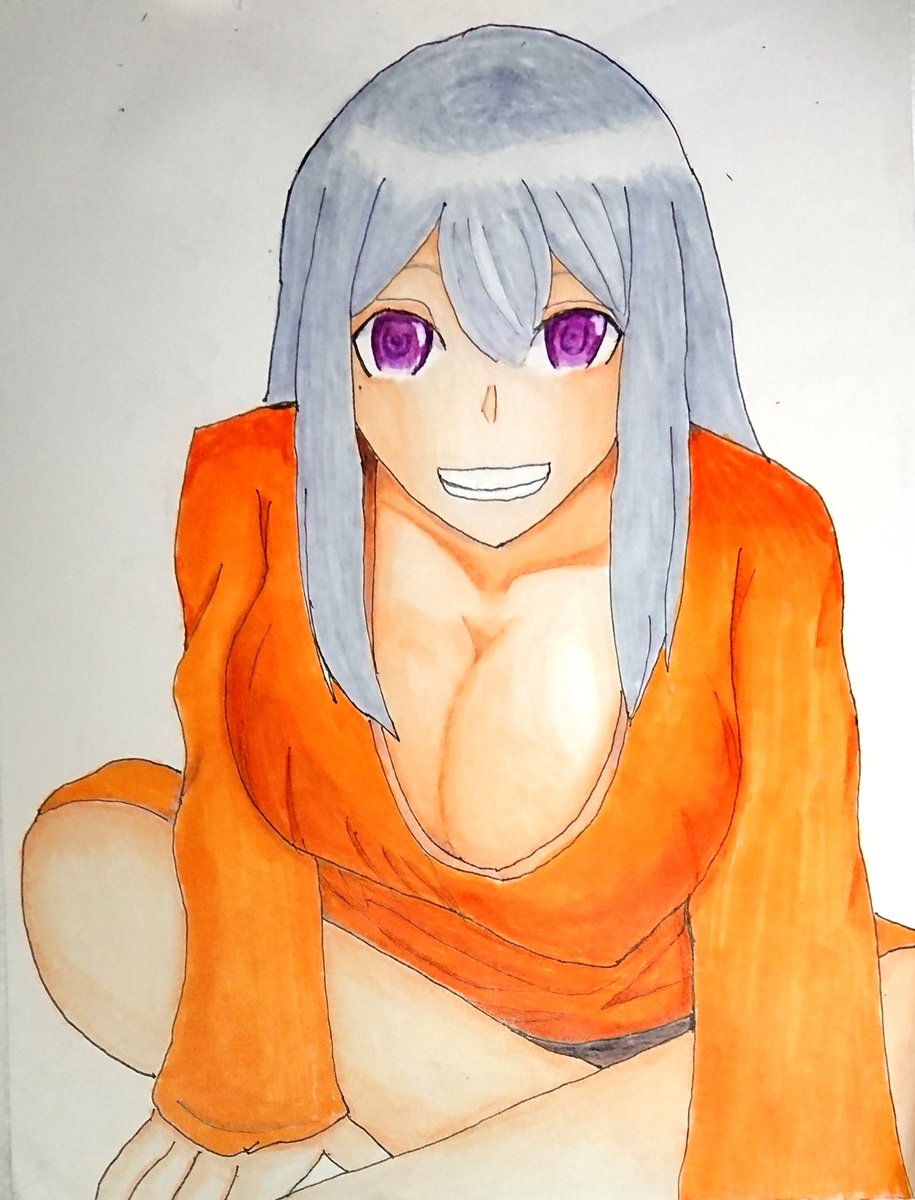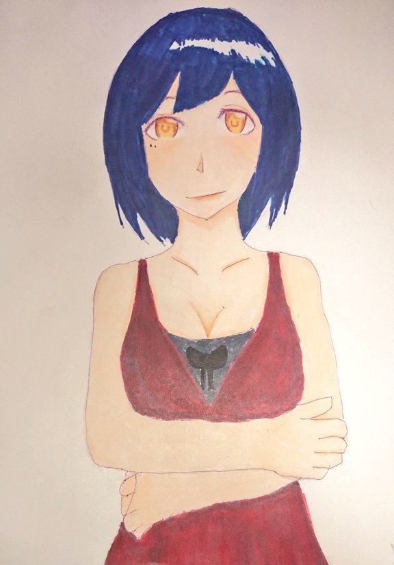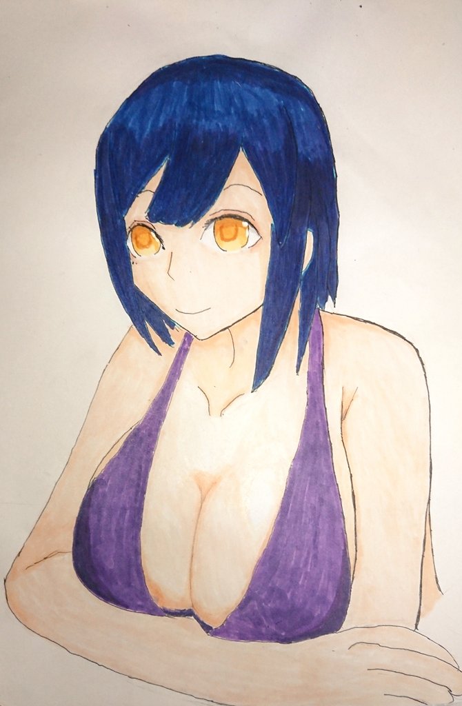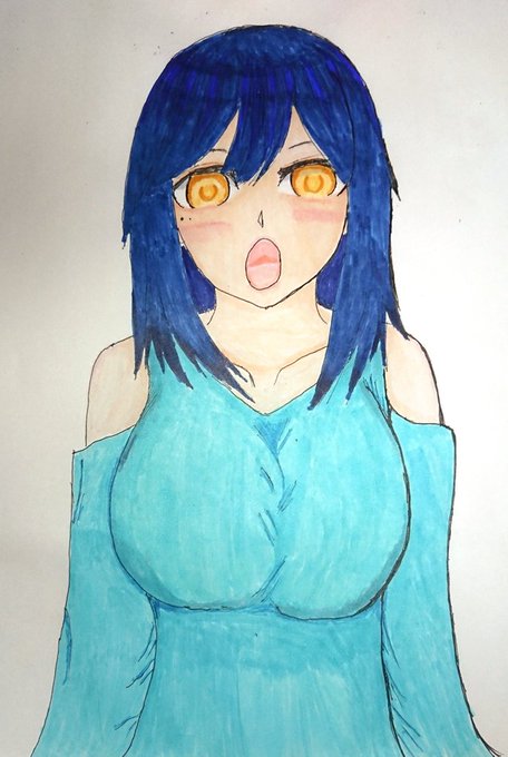 去年のをリメイク! 謎の裸カーディガン一年ぶり! クレヨンからコピックに画材はバージョンアップ! 二枚目はカーディガンの色と目に光を追加しました #いいおっぱいの日 #でろあーと
