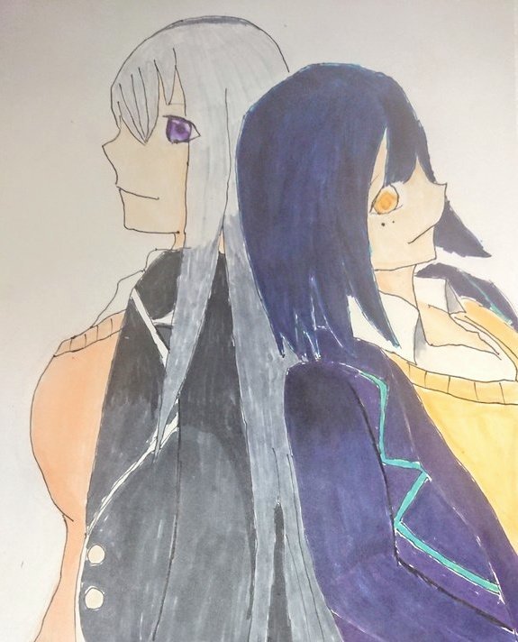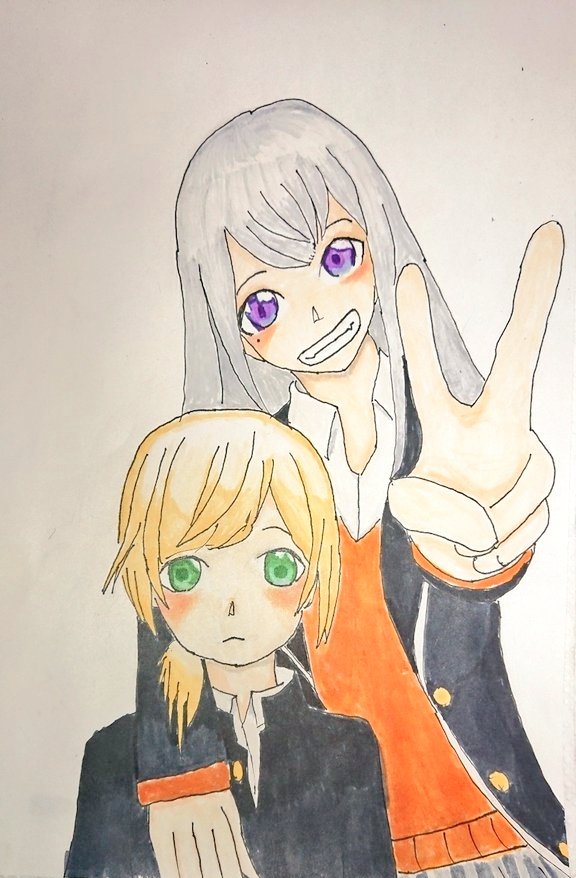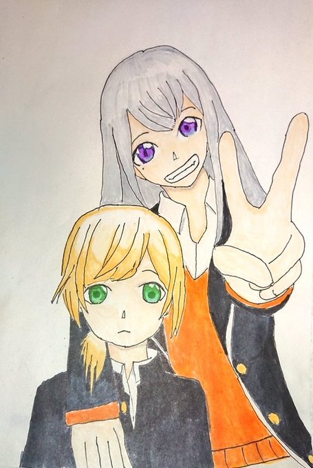 でろーんとアキくん 制服でツーショット!! 本当に姉弟見たいなイラストになりました #でろあーと #アキくんちゃんアート