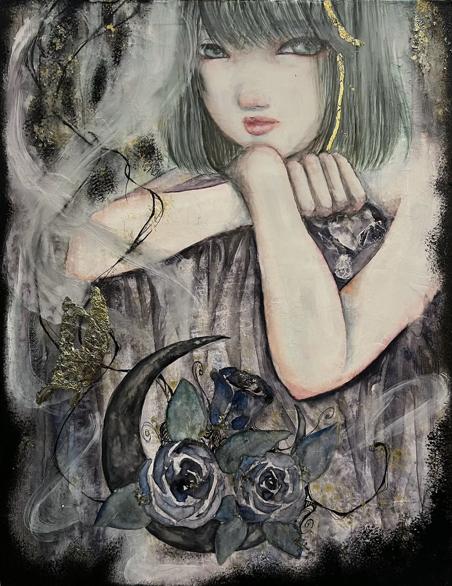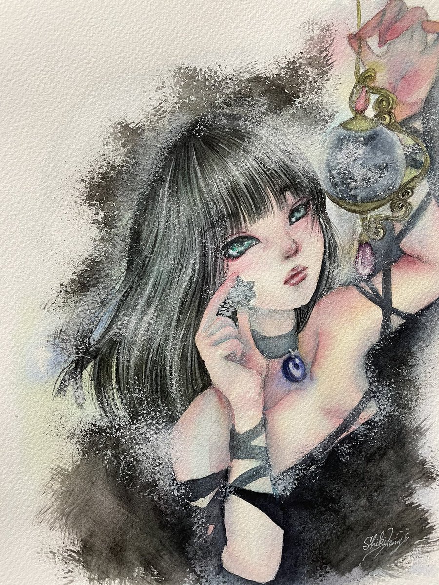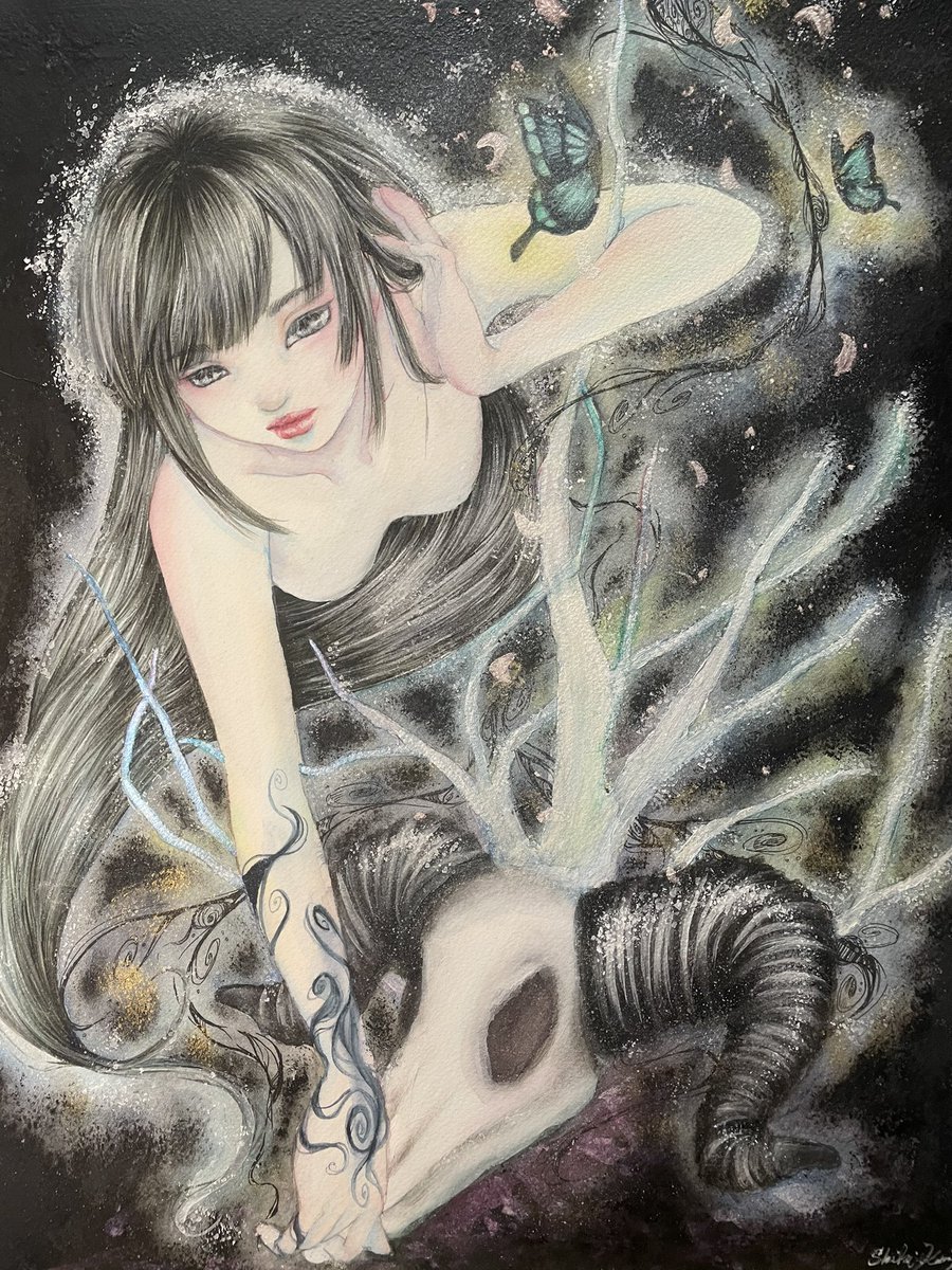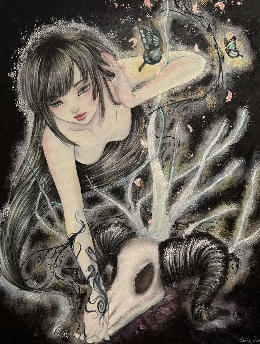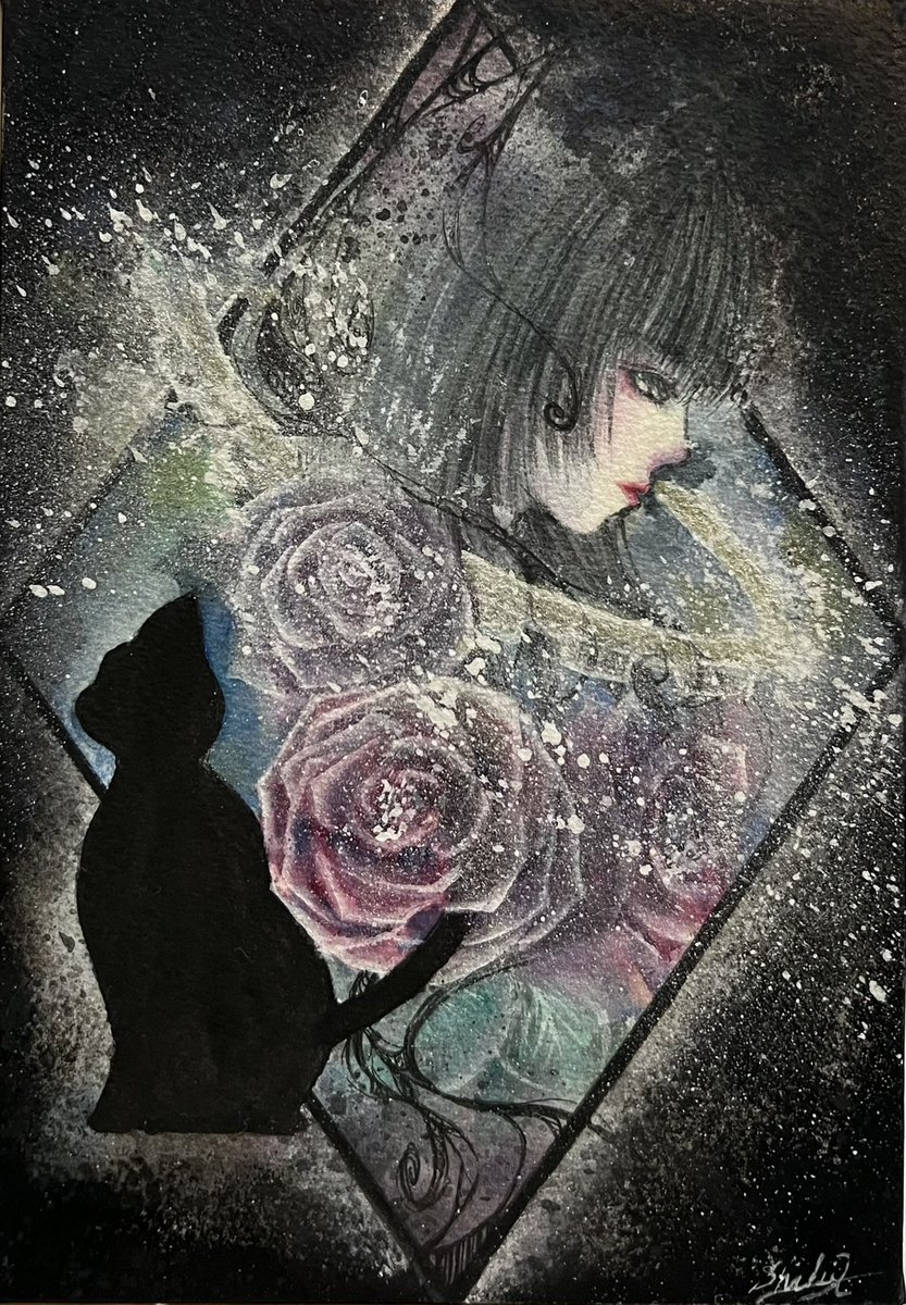 こちら、昨日搬入してきました✨ ぜひ楽しんでいただけたら嬉しいです(*´ω`*) 2016年〜2022年までの作品を選んで展示しています🦋 本日も19時から🥀 よろしくお願いいたします! #源点回帰 #Blacklutile #art #illustration twitter.com/shikikamiji/st…
