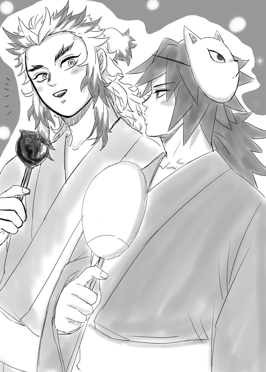 #ひらいて赤ブー 👹滅の刃 【杏花水月】 煉🔥杏🔥郎×冨🌊義🌊 たくさん開催されますように~🥰🙏💓💓 🔥→🌊 🍜ストッパー🔥さんを見て🌊さんのも出るよね?!という妄想で描いたら謎時空の代物が出来ました🤣