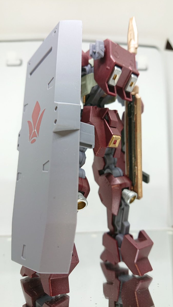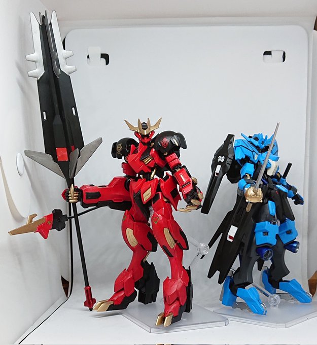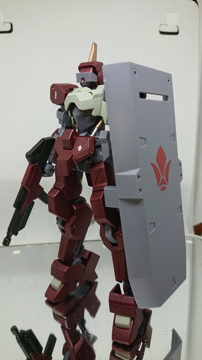 #今月作ったプラモ晒そうぜ イオフレーム獅電、出来た。 なんだかんだで、今月組み立てから塗装まで終わったのは、コレだけ。(苦笑) #ガンプラ #ガンプラはどんな自由な発想で作ってもいいんだ #鉄血のオルフェンズ #イオフレーム獅電