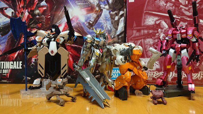 #今月作ったプラモ晒そうぜ (番外編 今月塗装したプラモデル) ナイチンゲールの塗装をしながら、鉄華団コンプリートセット塗った。 イオフレーム獅電×2は、なんとか3日で終わった。 #ガンプラ #鉄血のオルフェンズ #逆襲のシャア