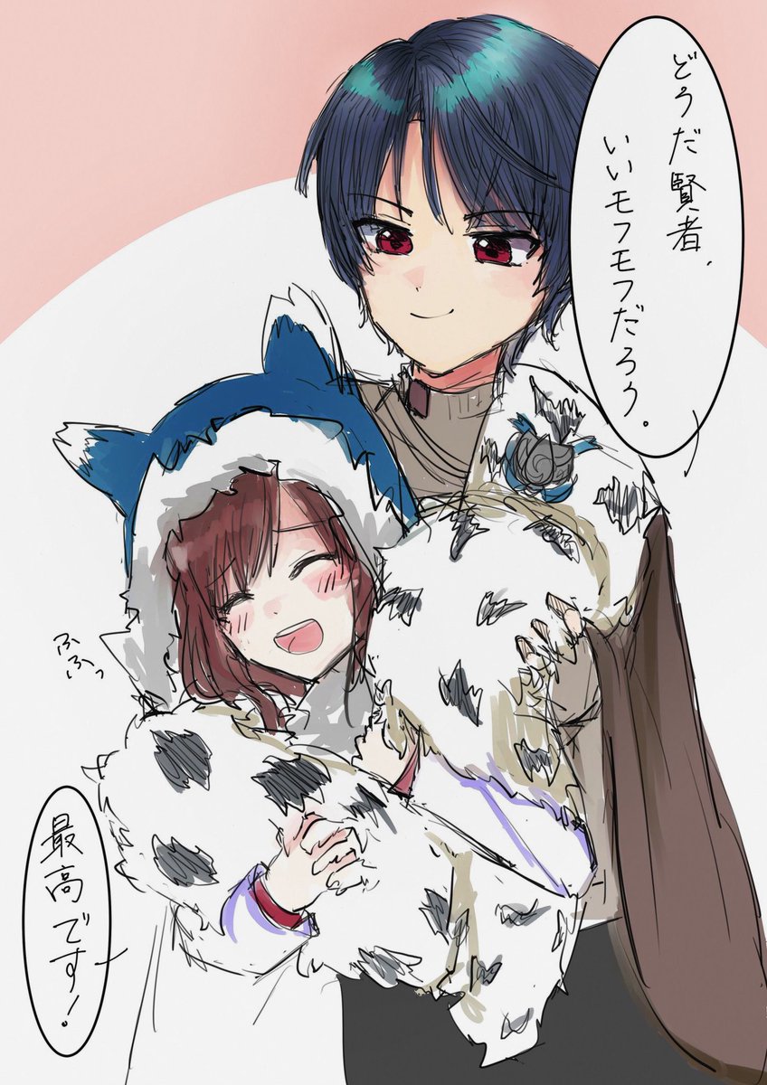#まほやく_FA シノ晶♀ 「あとモフモフのズボンが揃えば全身モフモフだ」 「それは楽しみですね!」 ※盛装の魔法使い四コマネタ