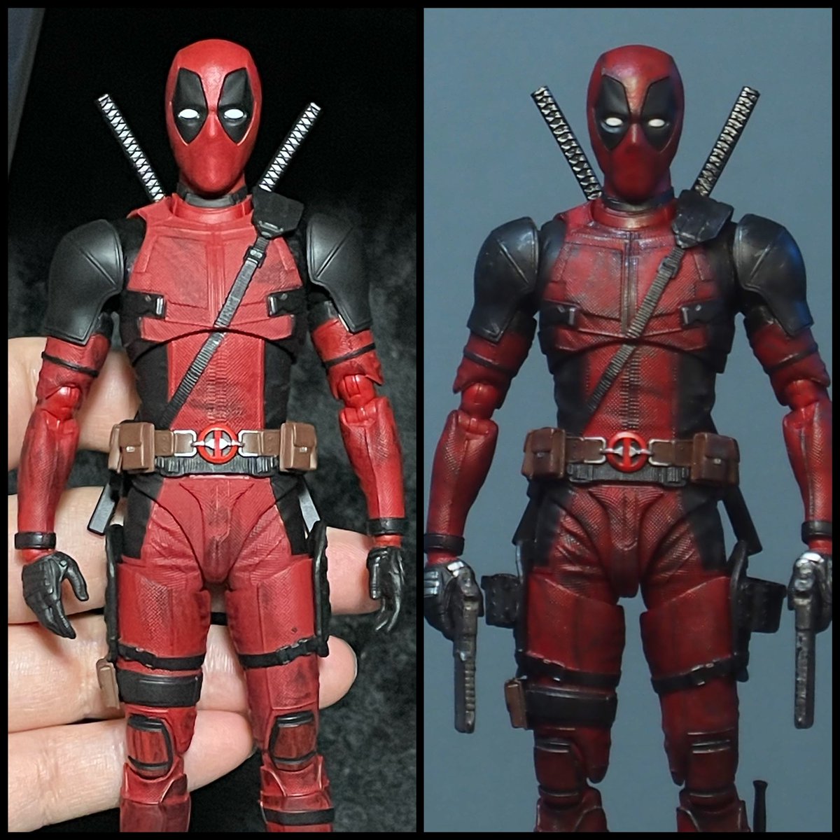 28 241 フィギュアーツ デッドプール スーツの色と質感意識してやり直しました ホルスターはレジンでML複製、ウェザリングはクリアブラックとブラウン、ウェザリングマスター、シルバー 表情パーツの複製が一番しんどかった 22/03/05 22:36