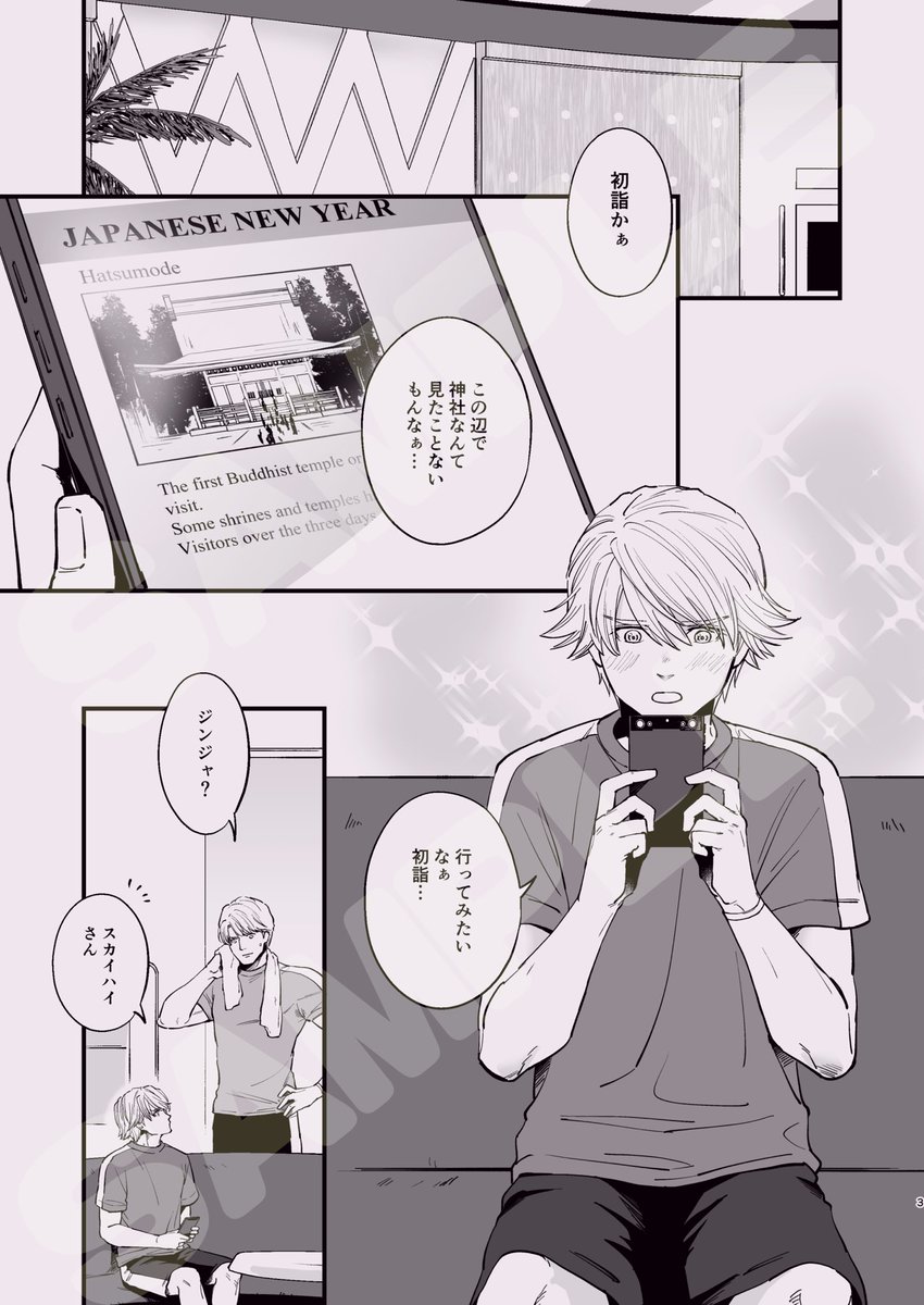 冬コミ新刊サンプルです🙌 『Flying Start!』 B5判22頁 会場頒布価格¥300 キースさんとイワン君が初詣に行くお話です。 とらさんにて通販あり。まもなく予約開始になるかと思います。 よろしくお願い致します🙇♀️
