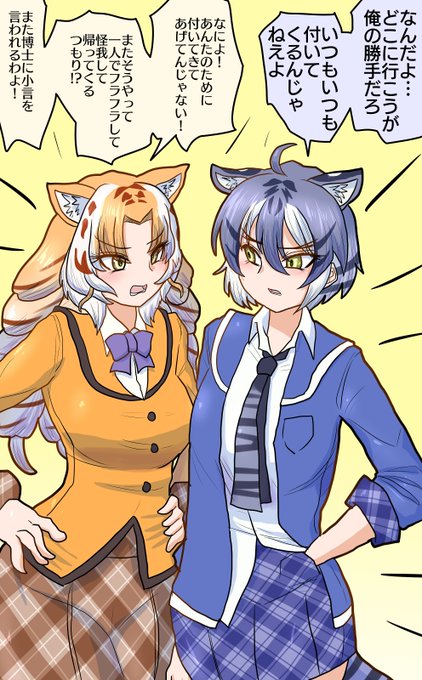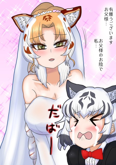 [skeb]ホワタイパパとゴールデンタビータイガー(その2) Skeb依頼で、「ホワイトタイガーとゴールデンタビータイガーが親子だったら?」という設定のイラストです。