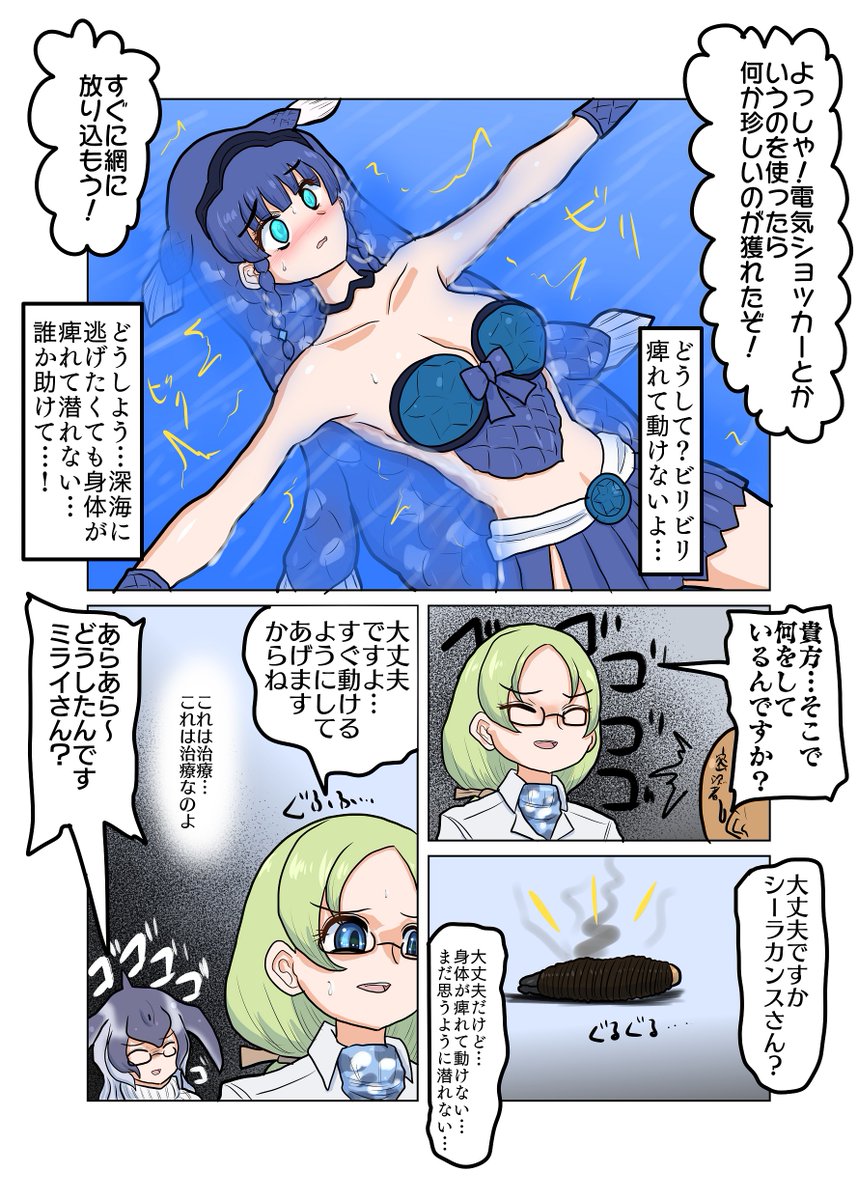 12 46 [Skeb]シーラカンス捕獲 Skeb依頼で「捕獲されるもミライさんに救出されるシーラカンスだったが…」です。ご依頼ありがとうございました。 23/07/30 12:44
