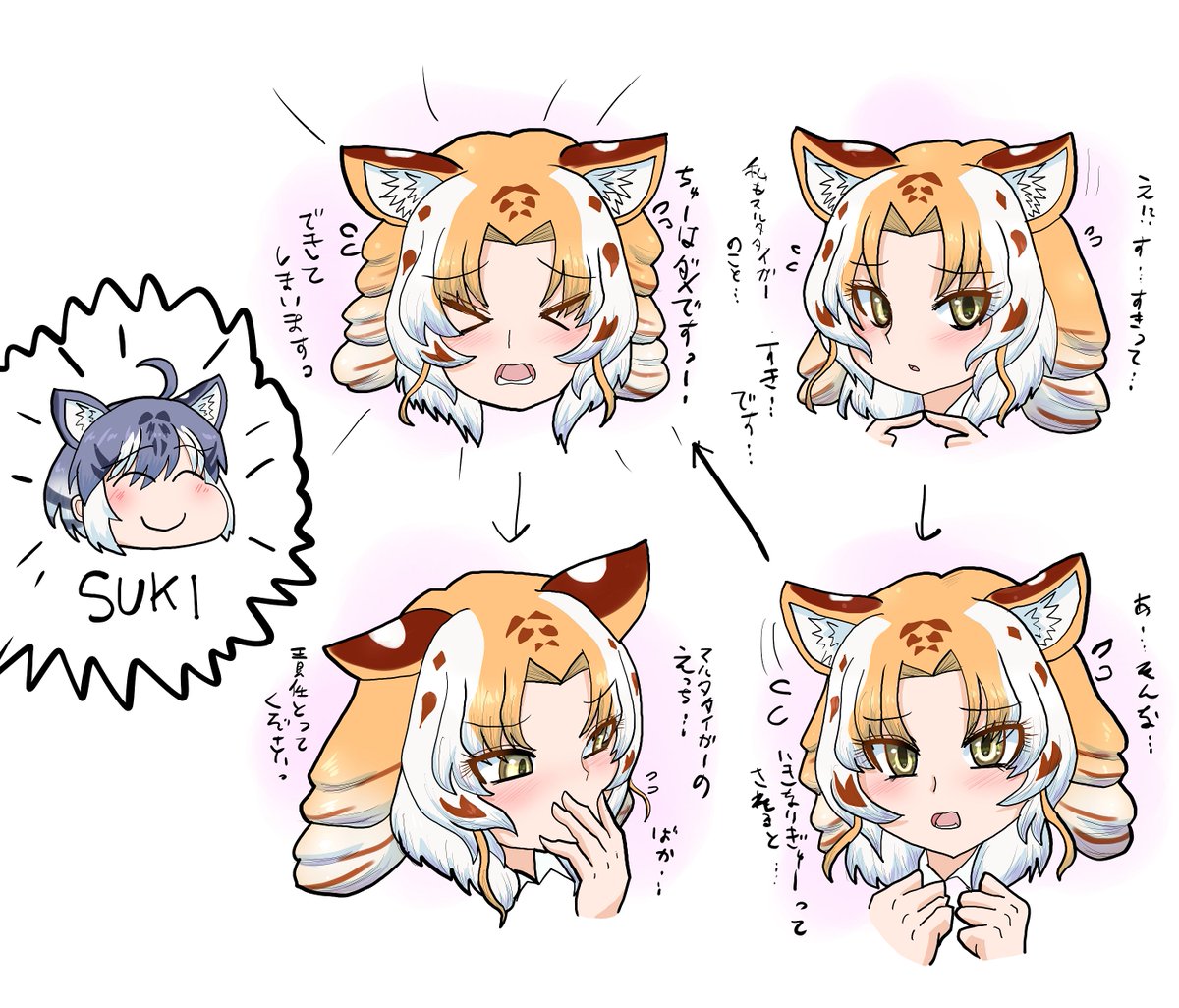 [skeb]ホワタイパパとゴールデンタビータイガー(その4) Skeb依頼で、「ホワイトタイガーとゴールデンタビータイガーが親子だったら?」という設定のイラストです。Skebで納品した文はここまでです。ご依頼ありがとうございました。前回→