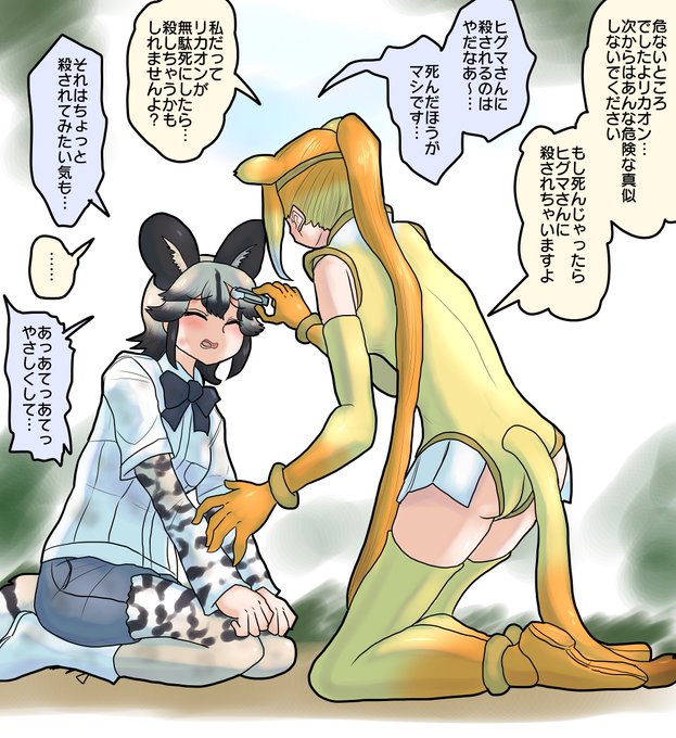 けがリカオン 一人でちょっと無茶して傷だらけになったリカオンと治療してあげるキンシコウ