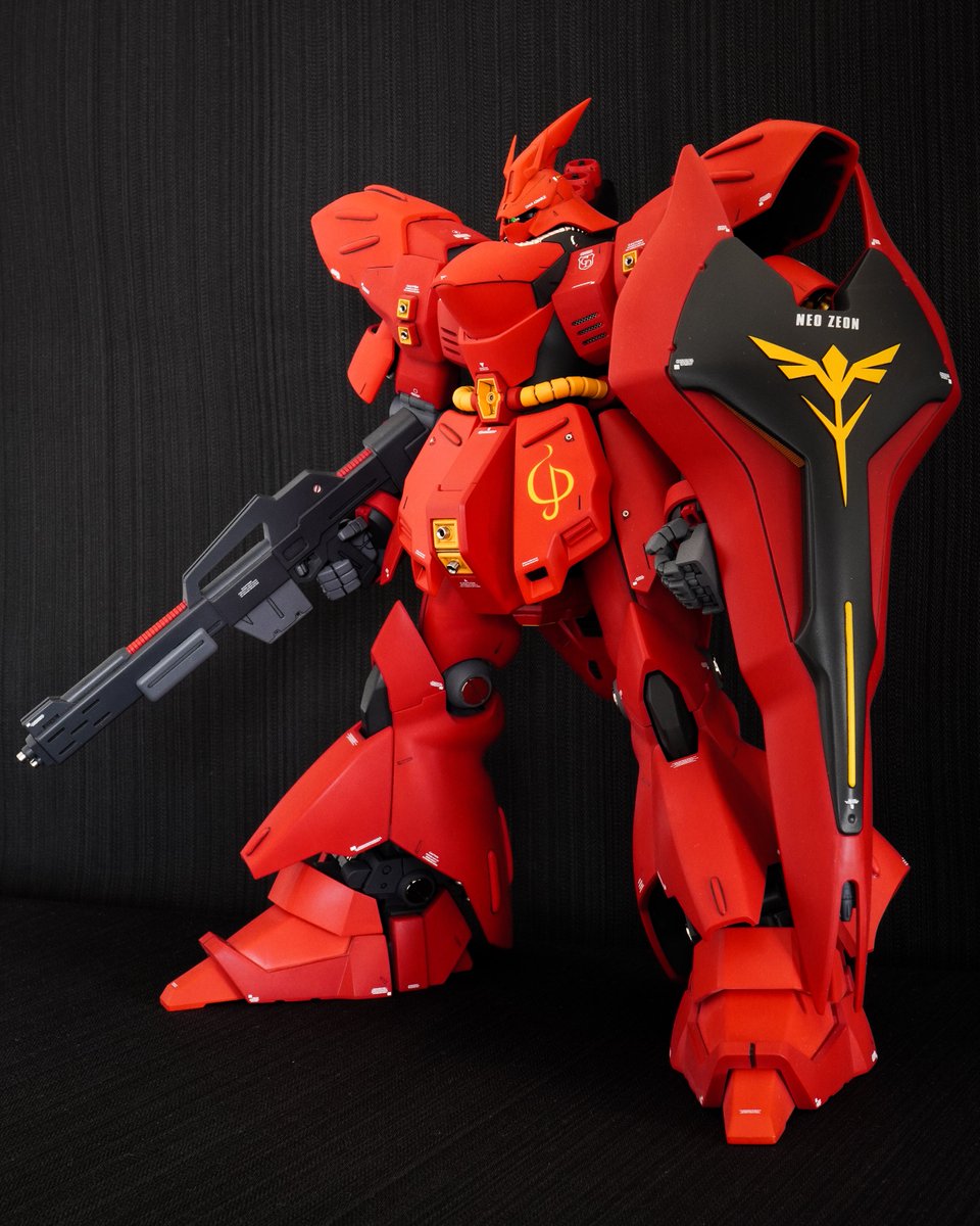 1/100 MG サザビー完成② 今回はサザビーの赤にも拘りました! 使用したのはフィニッシャーズのディープレッドとルミレッド 濃い赤はディープレッドをそのまま 明るい赤は二色を試行錯誤しつつ何度も混色し、完璧な赤を作りました❗ #ガンプラ #サザビー #ガンプラの画像貼るとRTされると聞いて