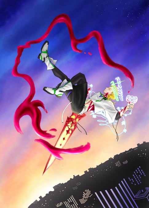 #アレヴァンオンリーイラスト集企画 ディオニソスⅫで参加させて頂きました🍷 逢魔時から宵の口へ。 夜の迫る時間を駆け、そして次代の最強が照らす闇へと繋げる、零(主催様)との時間帯コラボもお楽しみください✨