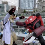 第29話「ジャブローに散る!」 コスサミで撮影して頂いたアスラ―ダAKF―01さん(シャア専用ズゴックさん)との写真に「線」を書き足して躍動感を出してみた。(もう1枚は書き足す前の画像) モノアイも光って動くので本当にすごい! #コスサミ
