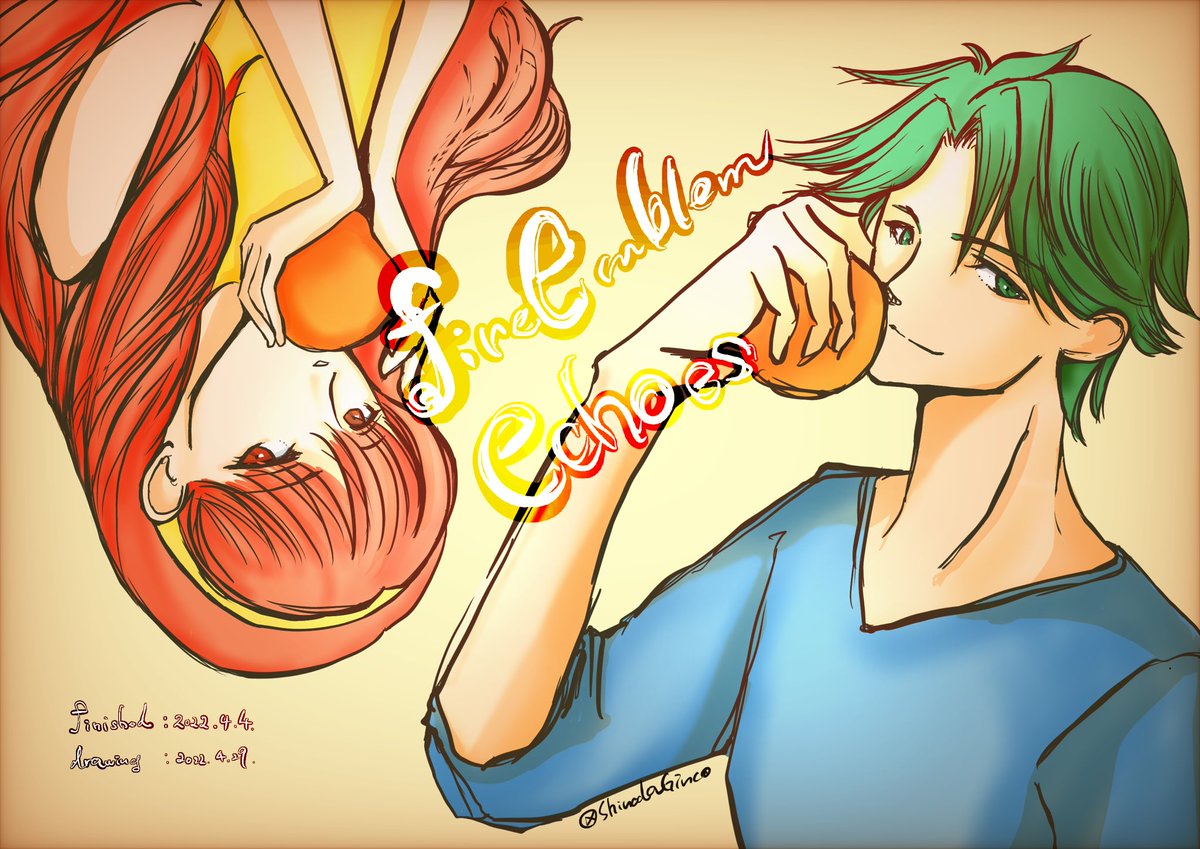#ギンコのエコーズ #gindrawing2022 クリア記念 クリア日2022.4.4 好きなキャラ沢山できた! でもやはり、Echoesはこの2人だな ものすっごくオレンジ食べたくなるゲームでございました🍊 甘酸っぱい❤️
