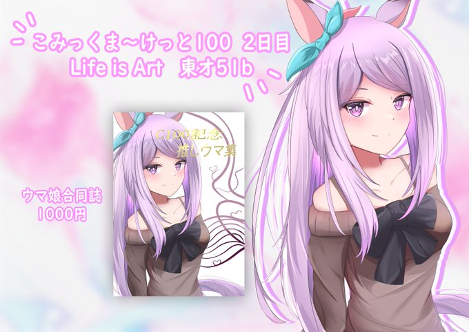 58 228 「こみっくま~けっと100 DAY2」 【お品書き!!】 ウマ娘合同誌本を作らせて頂きました! ぜひ来てくださいね😊 22/08/12 19:19