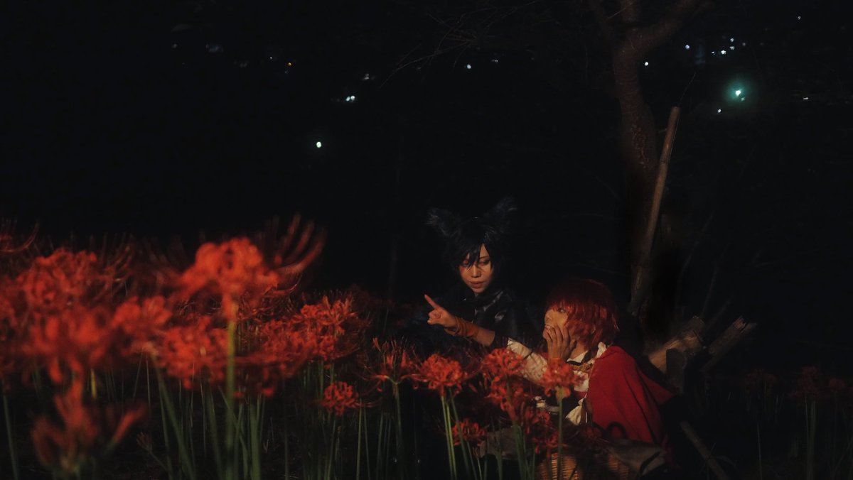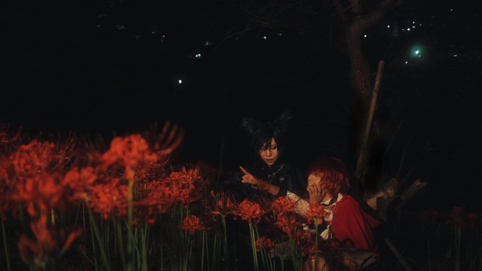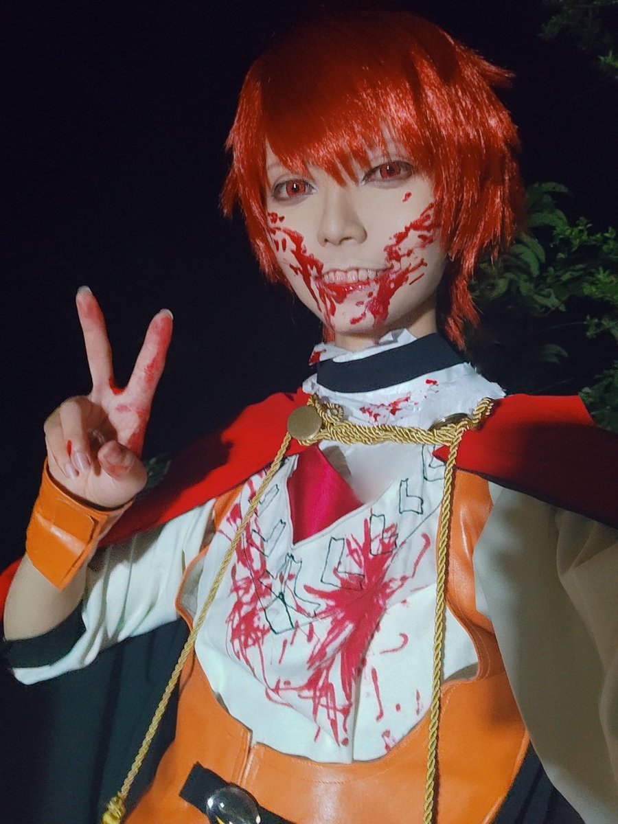 【※コスプレ注意※】⚠️3.4枚目血糊 昨日のライチ併せの写真~!!!! 揃わなかった残念と思っていたけど全員集合のシーンでサブ📸のおふたりがニコとデンタクやってくださって全員の写真撮れて感無量😭🙏🏻✨ たつきさんとライチや背景作って行って背景再現出来たの!💓 #221009ライチ血みどろクラブ