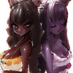 褐色肌と紫肌のお姉さん(¬∀¬ )(っ˘ ꒳˘c) #イラスト