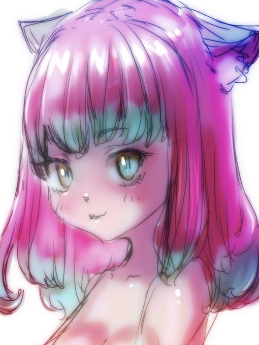 ネコミミの絵ばっかり描いちゃう( っ•͈ω•͈)っ #イラスト