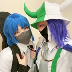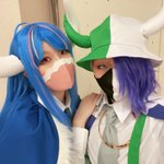 そくほー!すだ氏の姉貴と鈴音ちゃんと屋内のフリースペースにいる🦖🦖 #富士コス