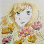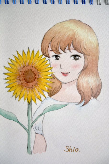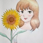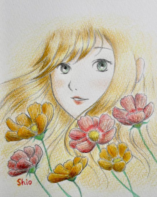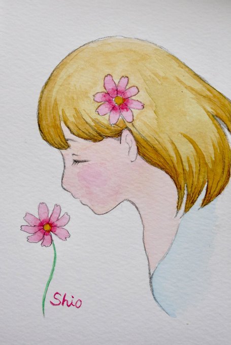 『コスモスと少女』 コスモスの季節がいよいよやってきます・・・! たくましくも可憐に咲き誇るコスモス、本当に可愛いです。 ささっと描いてみました。 線画はシャープペンです。 #watercolorpainting #水彩画 #水彩イラスト #shiowatercolor
