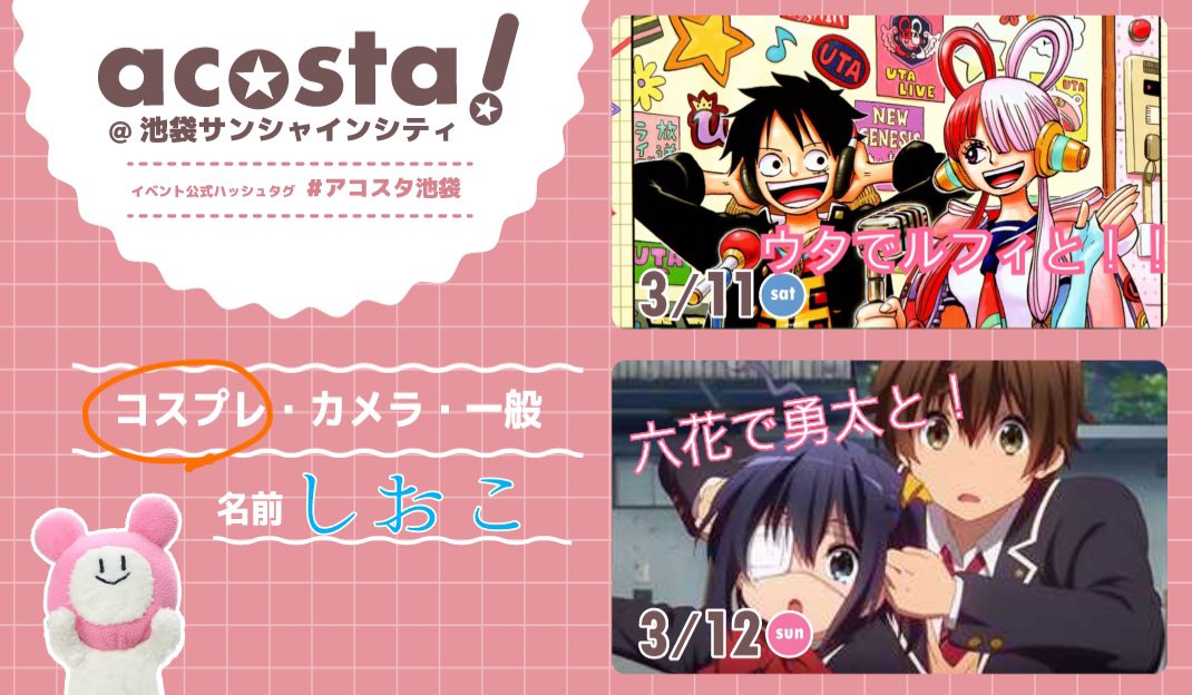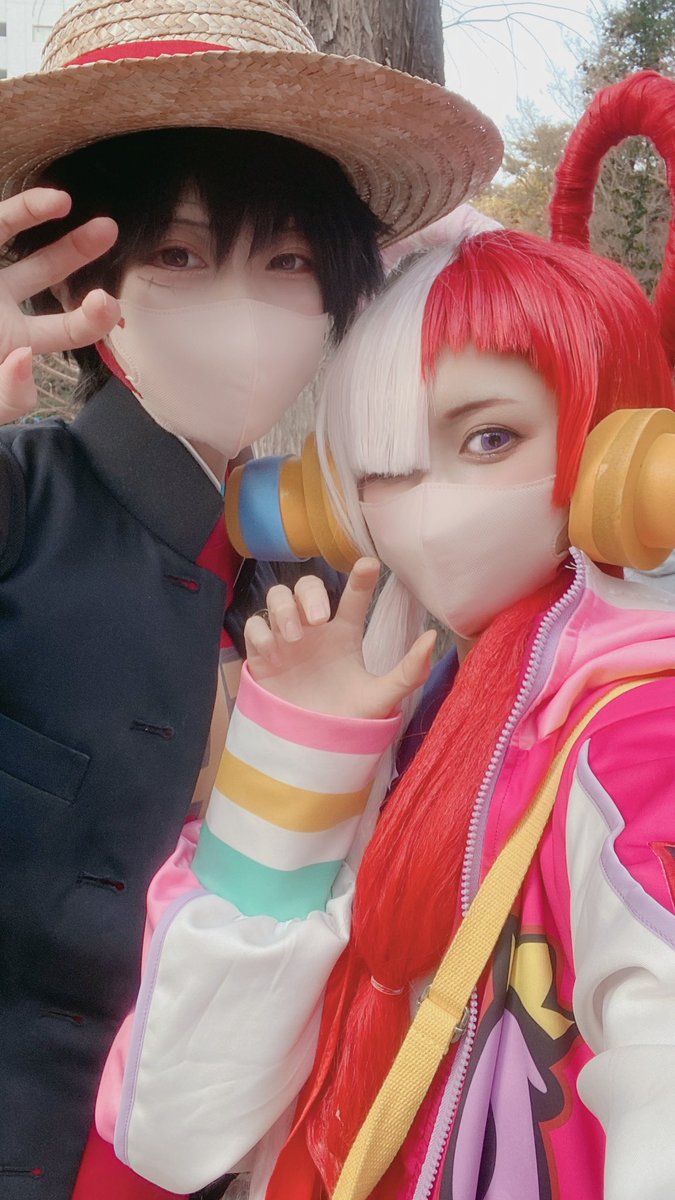 1 4 cosplay アコスタお疲れ様でした〜!! ワンピース学園のウタとルフィでした🫶時間足りなすぎた!😂 #アコスタ池袋 23/03/11 20:24