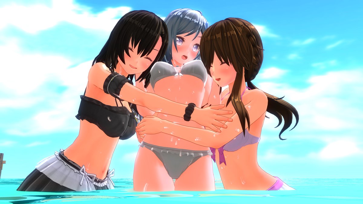 お題『水着』 うちの仲良し3人組 #cm3d版深夜の真剣エディット60分一本勝負 #com3d2 #cm3d2