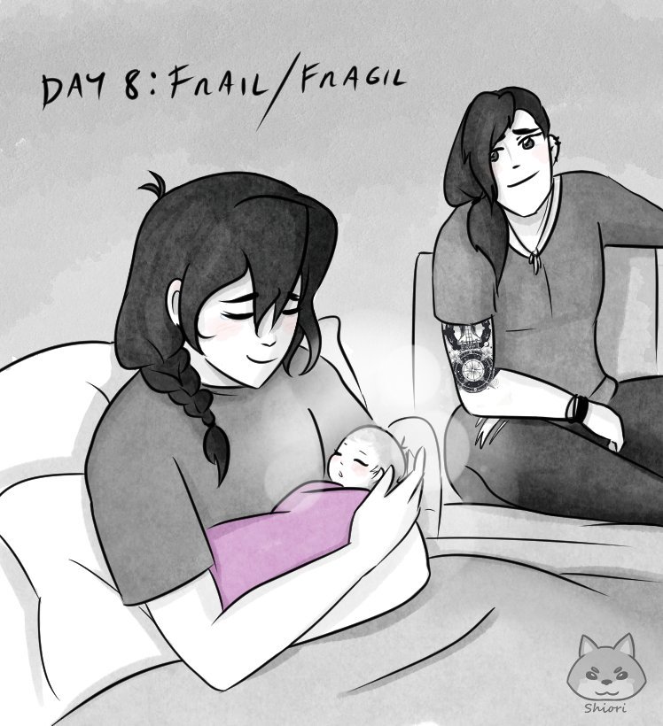 Day 8: Frail! This is a scene from my omegaverse role with @HuevitoEnojao Shiro was shopping when Keith goes into labor and it is Kuro who takes him to the hospital! (But Shiro had an accident with the car and that's how he loses his arm! The Drama!!) #Inktober2019 #Keithtober