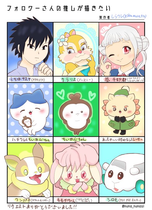 第2弾🌟 ()がないキャラは、ちいかわのキャラクターです✏️今回も楽しく描かせていただきました~ (*^_^*) リクエストをくださった皆様、本当にありがとうございました!! #フォロワーさんの推しが描きたい
