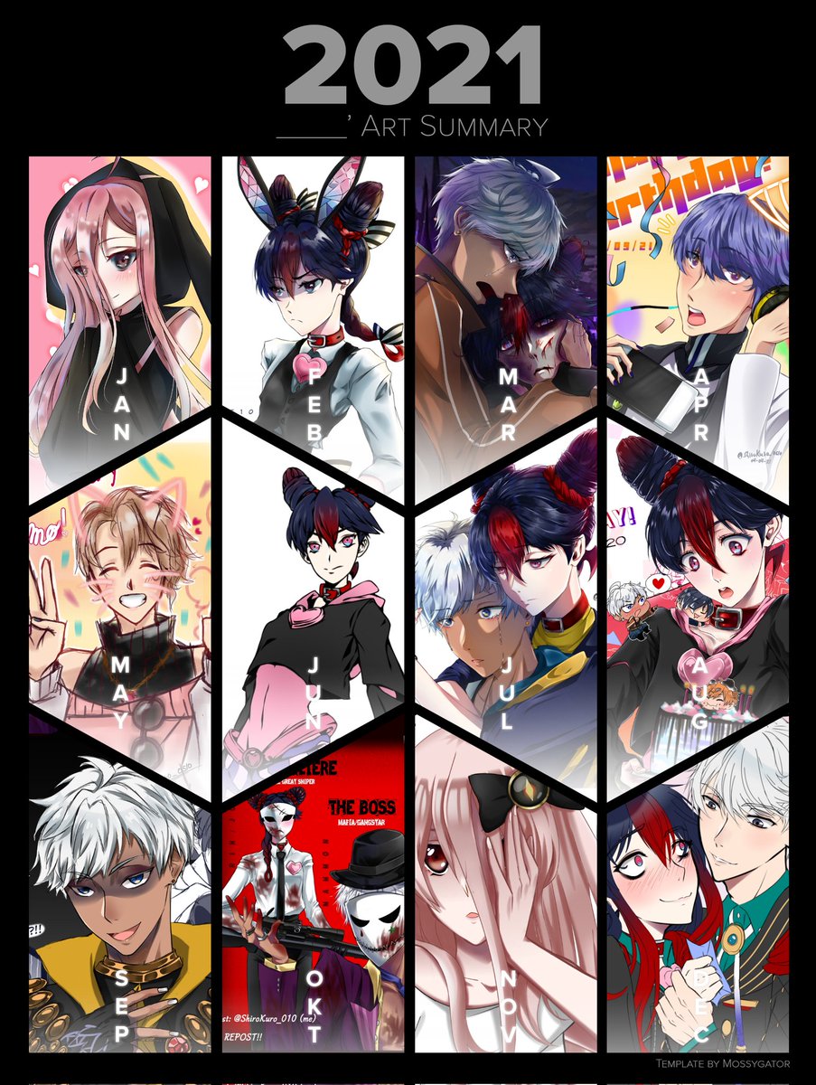 Joining this trend before the year end 🥰 This year, was doing my best to improve all of my arts 💕 Template by: @mossygator_ Pink OC by: @Kurase07 #Artsummary2021 #obeyme #obeymefanart twitter.com/mossygator_/…