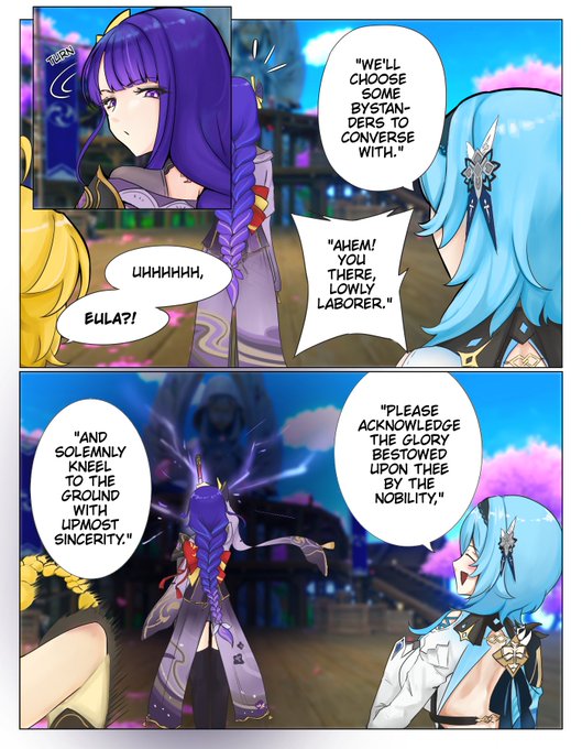 Speech and Etiquette With the Raiden Shogun - Diologue from the quest Speech and Etiquette. medibang.com/picture/of2205… #genshinimpactfanart #GenshinImpact #Baal #Eula #fanart