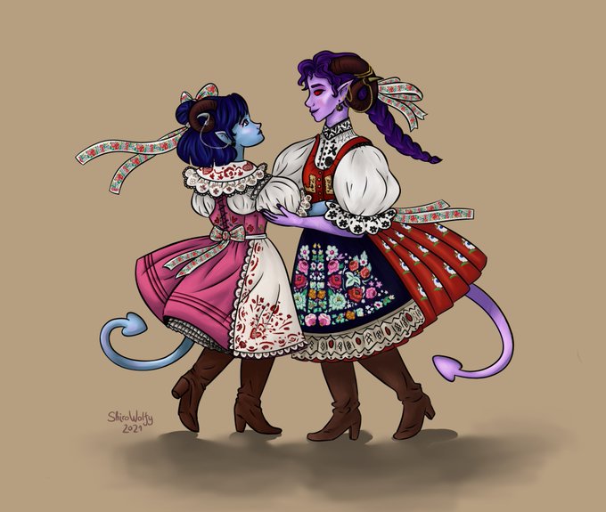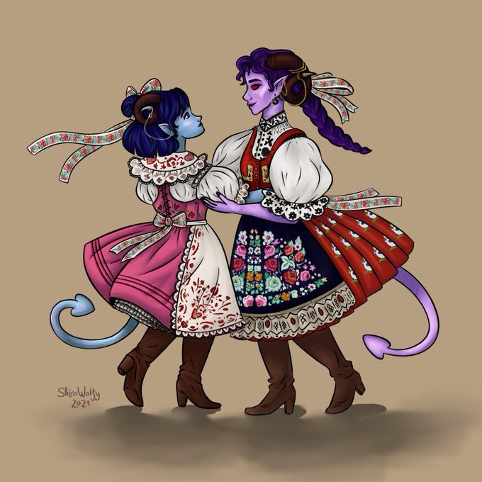 I just think they're cute and deserve to have fun together (they're dressed in Czech folk costumes) ... #CriticalRoleArt #criticalrolefanart #Criticalrole