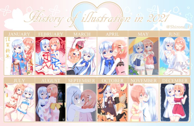 2021年のイラストまとめ! 毎月ココチノ目指して頑張ってました、無事達成出来てよかった...!