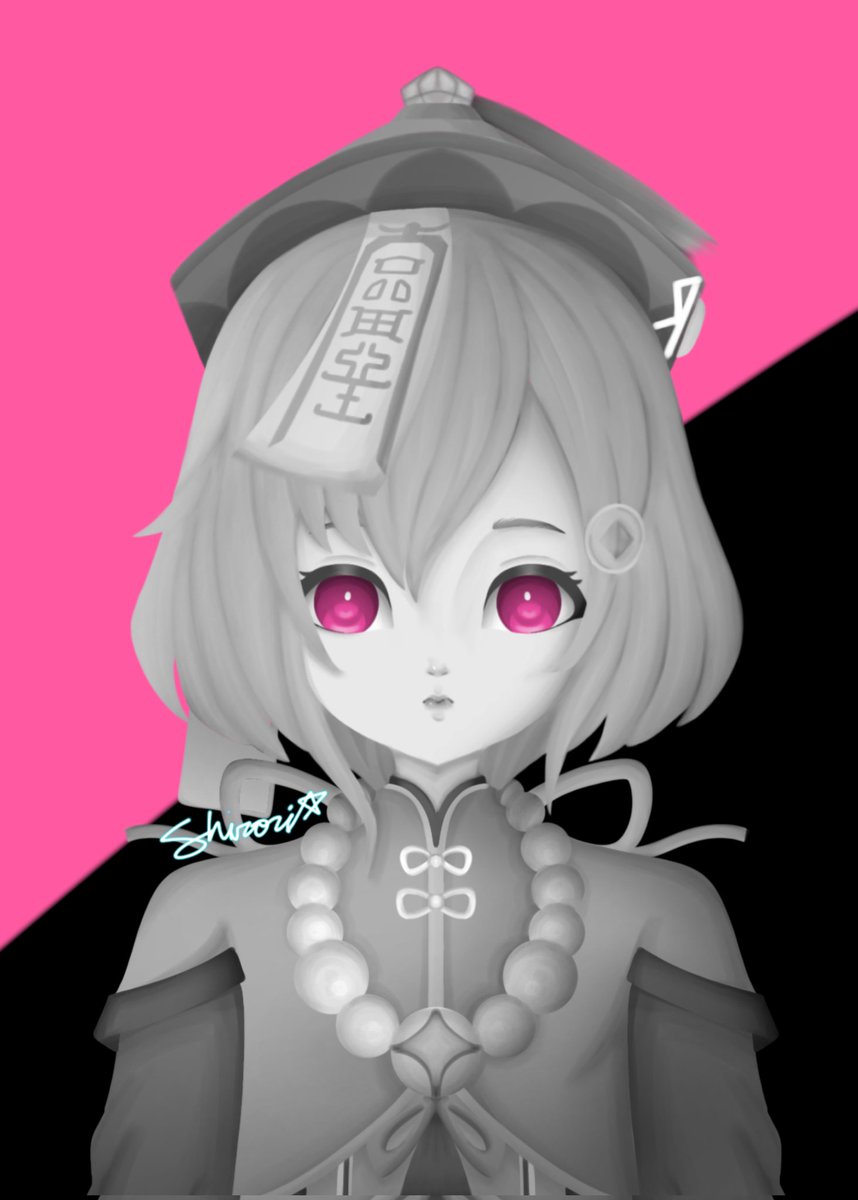 This is an old artwork that I made around Oct. 2021. I just wanna try grayscale back then. Qiqi from Genshin Impact #grayscale #oldart #genshinimpactfanart #Qiqi #digitalart