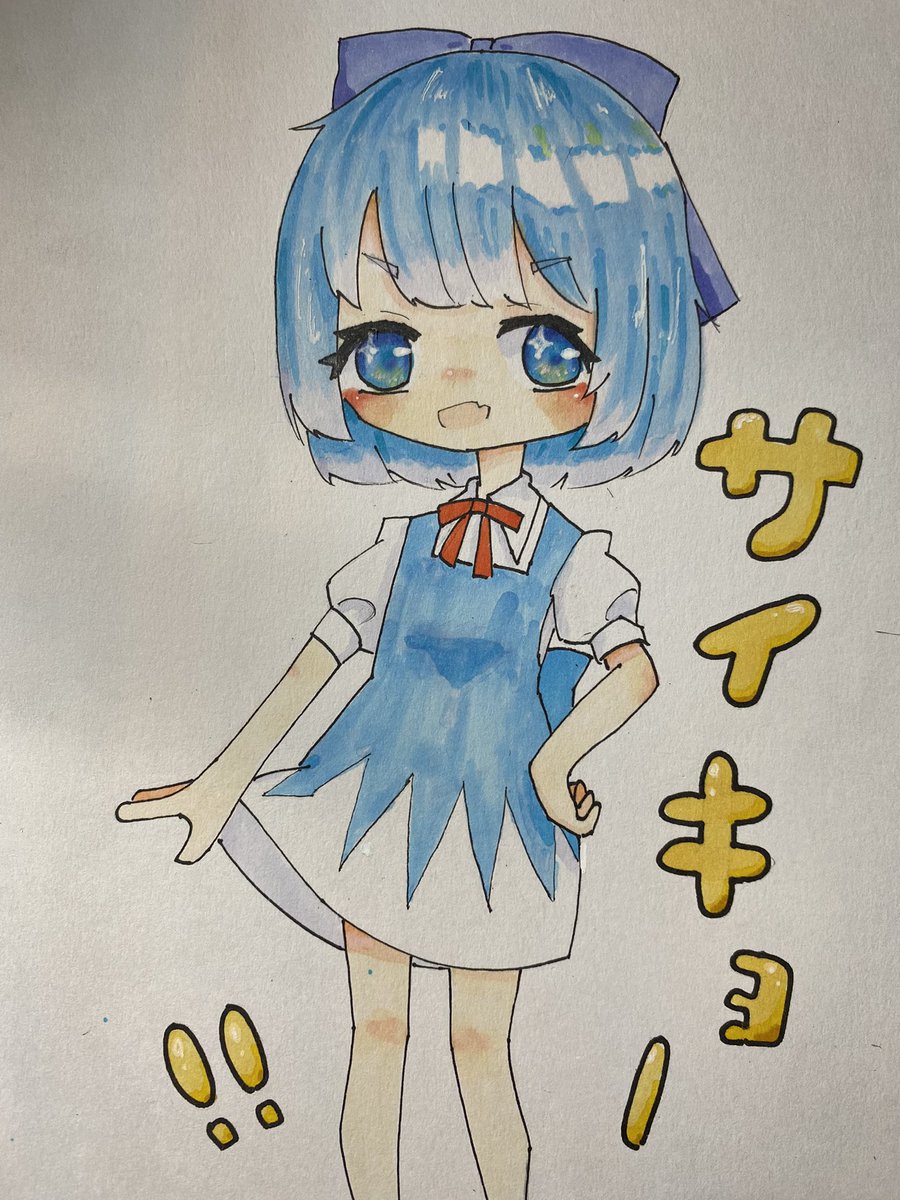 深夜テンションで描いたチルノ! 液漏れして足に点着いた( ;ᯅ; ) #東方 #コピック #コピック #絵描きさんとつながりたい