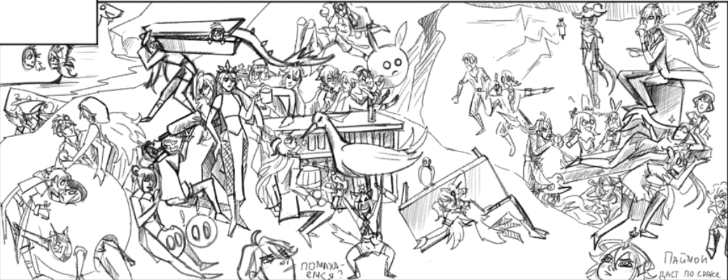 WIP я залайнила 1 фрейм ответа в аск. Я в восторге от бэкграунда, но к сожалению хиличурл закрыл фишль и оза. Но из плюсов альберта и паллада тоже закрыли #genshinimpactfanart