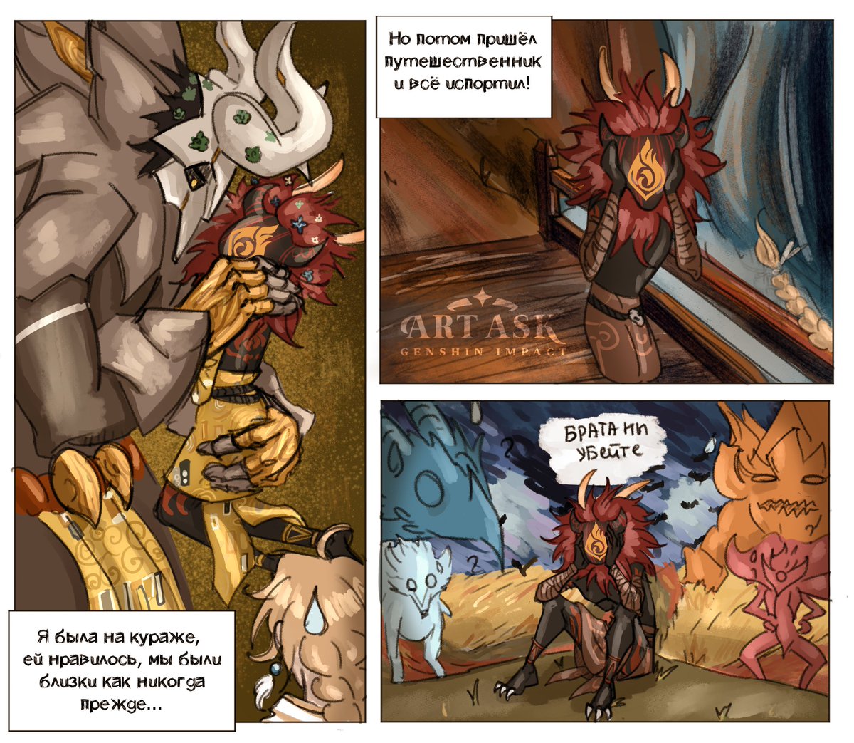 Очередной ответ в аск #Genshin_Impact #GenshinImpact #genshinimpactfanart Q: что же стало с твоей возлюбленной после стычки с путешественником? все ли с ней в порядке сейчас? (отсылка на предыдущий ответ где хиличуча подкатывает к лавачурлу)