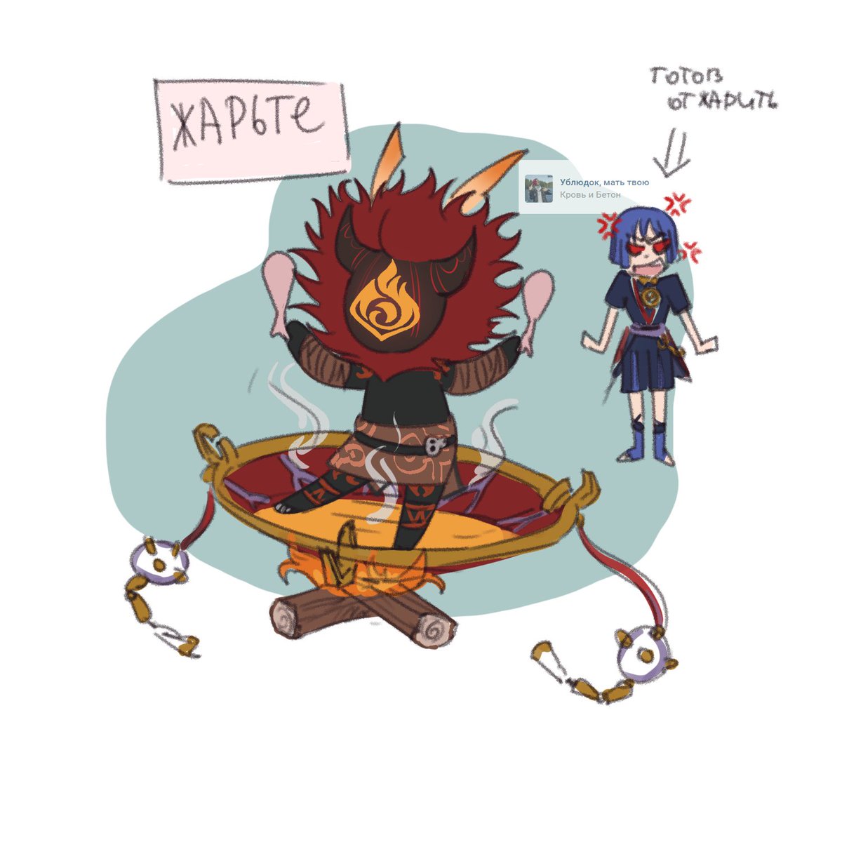 Мой ответ в аск за хиличурла-берсерка на вопрос "Ты не чувствуешь себя маленьким по сравнению с лавачурлом? Не боишься его?" Я обещала тому кто назовёт все основные отсылки под записью в группе аска нарисовать картинку, дерзайте: vk.com/wall-200903530… #genshinimpactfanart