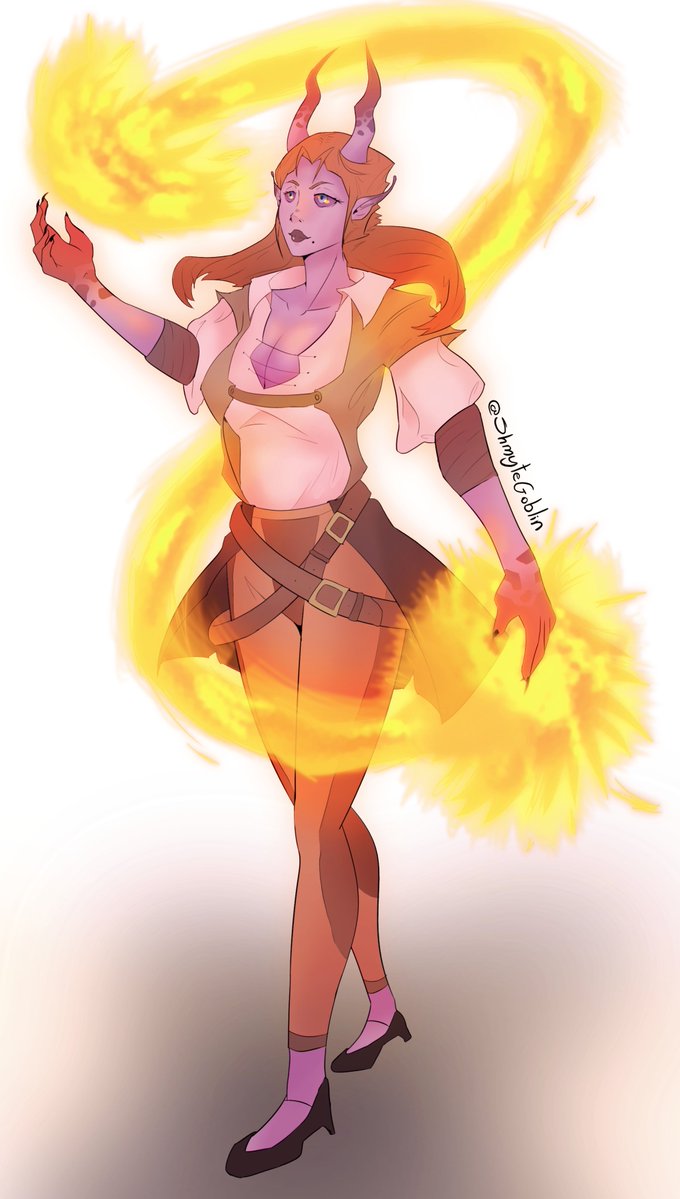 Did a bit of a break but came back with another re-draw/ effects practice of an older drawing I did. some may call her hot. #dnd #dndartist #DnDcharacter #dndart #digitalart #digitalart