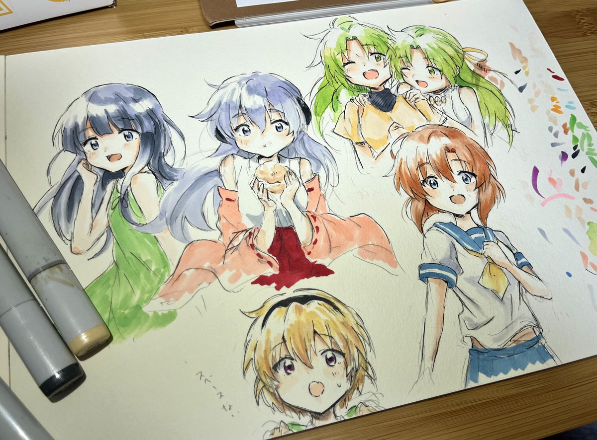 451 2138 ひぐらし業のアニメ化が決定した時くらいに描いたイラスト(だったような…) 粗いけど割と良い… 23/07/11 00:12