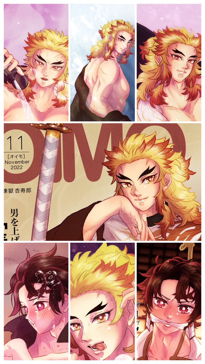 #今月描いた絵を晒そう #今月描いた絵を晒す 7回目の月まとめ。 今月は際どい絵ばっかり描いてたのでトリミング祭りです。 個人的に🎴くんの亀◇甲縛りがよく描けたなぁと結構気に入ってるけど、これ🔥さんが実在したら絶対しばかれるやつ👹