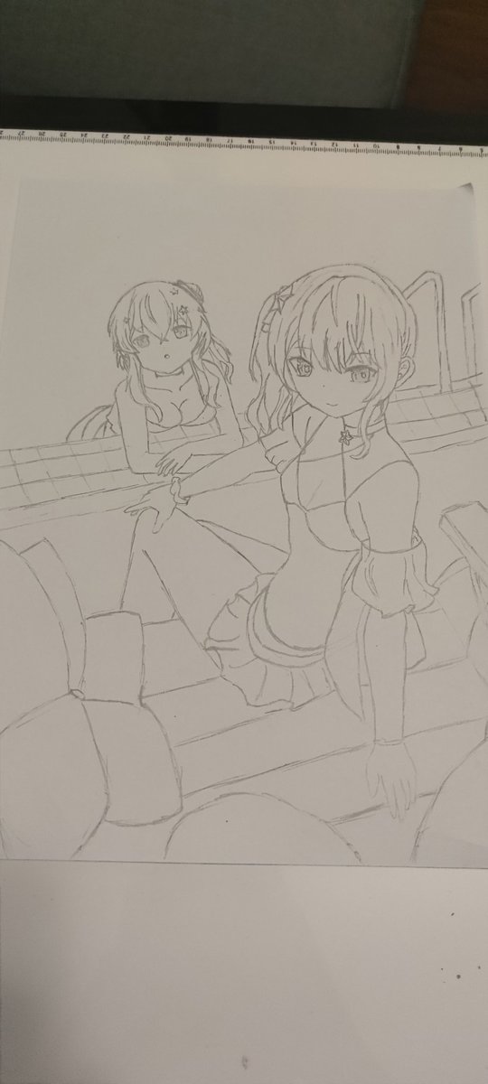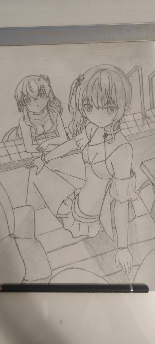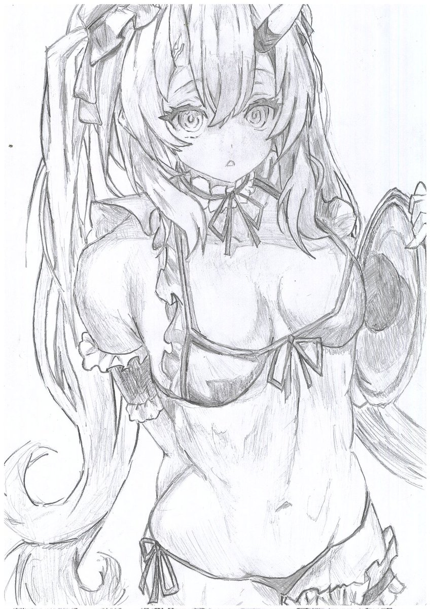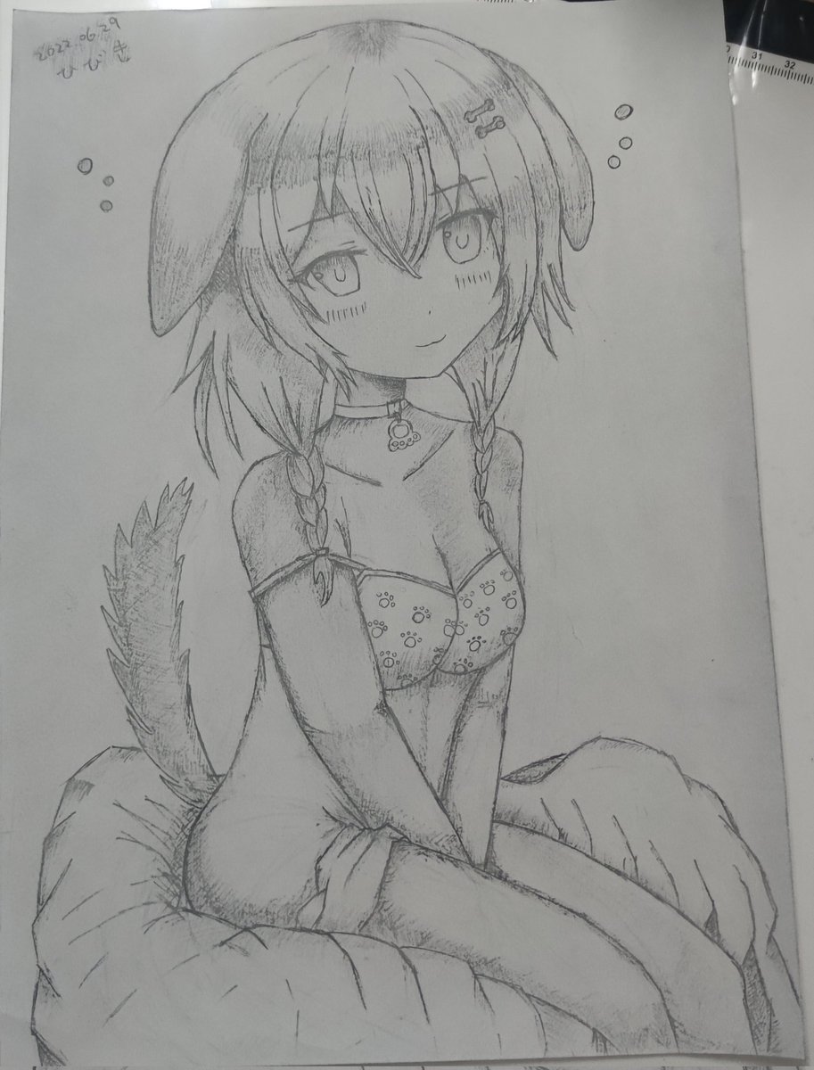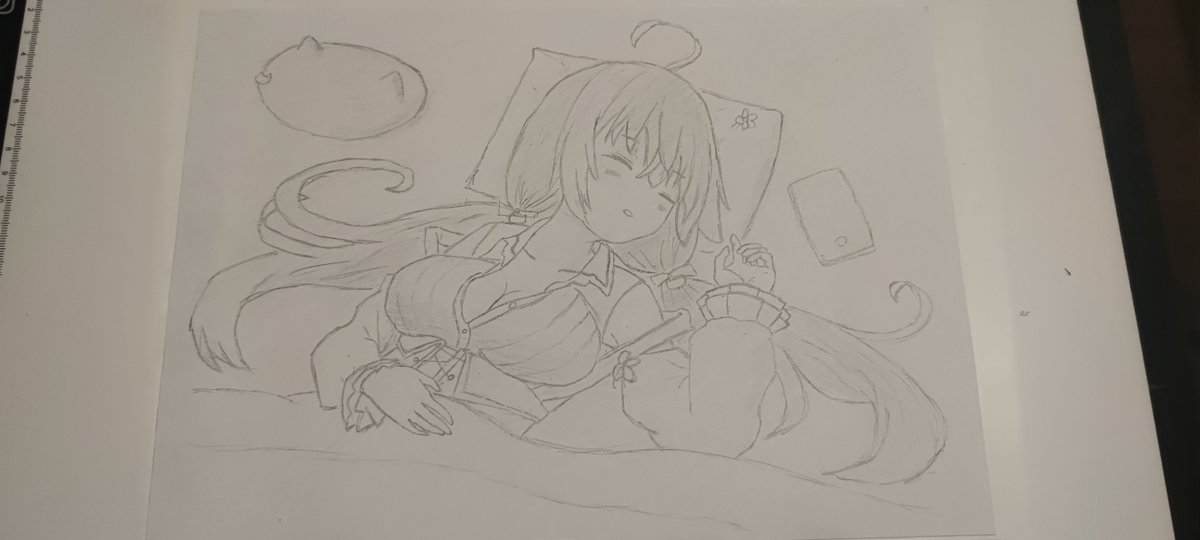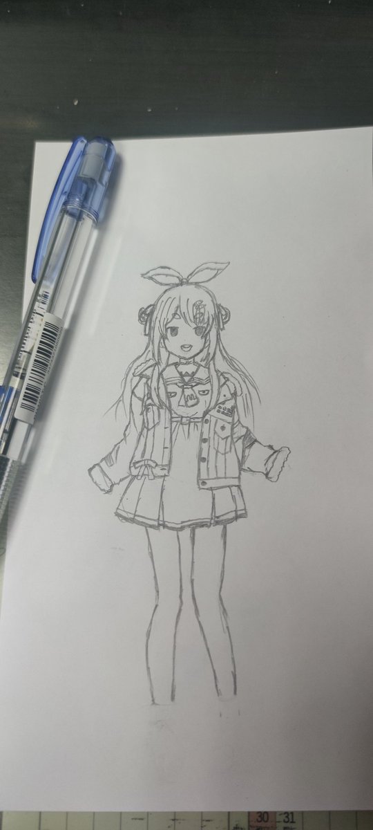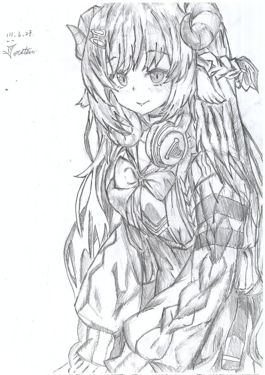 四日の努力 第一次參考資料自己設計 幼女菈米 一直覺得可以畫的更好 雖然只是個“草稿”但總有一天會完成它 左拍攝 右掃描 #LamyArt