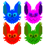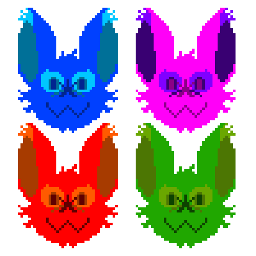 Only left myself like 20 minutes for this XD Apologies! It's Day 8 of #pixeltober2022! I present today's theme, '4 Colours', with four little self portraits of a certain bitbat #Octobit #Octobit2022 #Pixeltober
