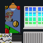 It's Day 10 of #Pixeltober2022 and the theme is 'Retro'. I started with a neon eclipse, then thought 'why not view it through a bedroom window?' and just went from there X3 #Octobit #Octobit2022 #Pixeltober