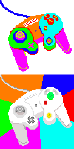 Something a bit more simple for Day 17 of #Pixeltober2022. The 'Videogame' theme made me remember my all-time favourite console, the Gamecube <3 And I kinda liked my draft structure too much to delete it X3 So here you go! #octobit #octobit2022 #pixeltober