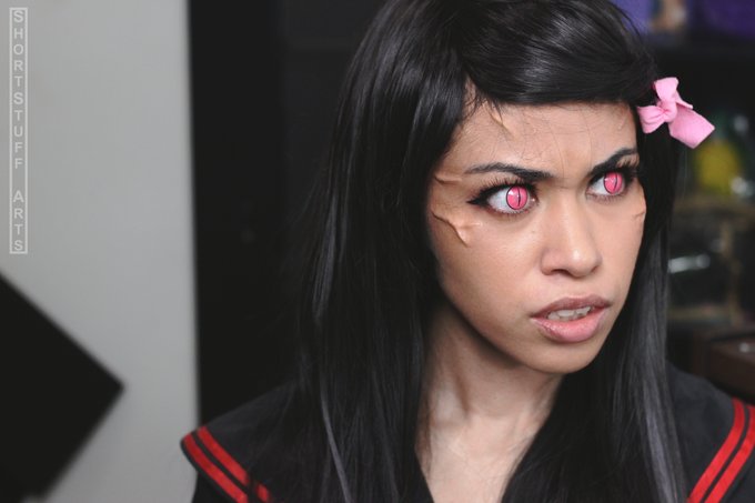 These lenses were VERY hard to see in. I was hugely on the struggle bus trying to get some decent photos. But I'm stoked to have finally tried out demon form #Nezuko. Don't touch my Tanjiro! #DemonSlayer #kimetsunoyaiba #cosplay #HappyHalloween2020