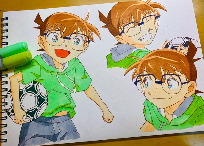 サッカーボールよく出来た👏 大好きな哀ちゃんのedのコナンくんです この目線の先には全て哀ちゃんがいるのです… はぁ、コナンくんかわよ、左の腹チラヤバない?? #名探偵コナン #江戸川コナン #コナンくん #模写 #コピック #アナログ