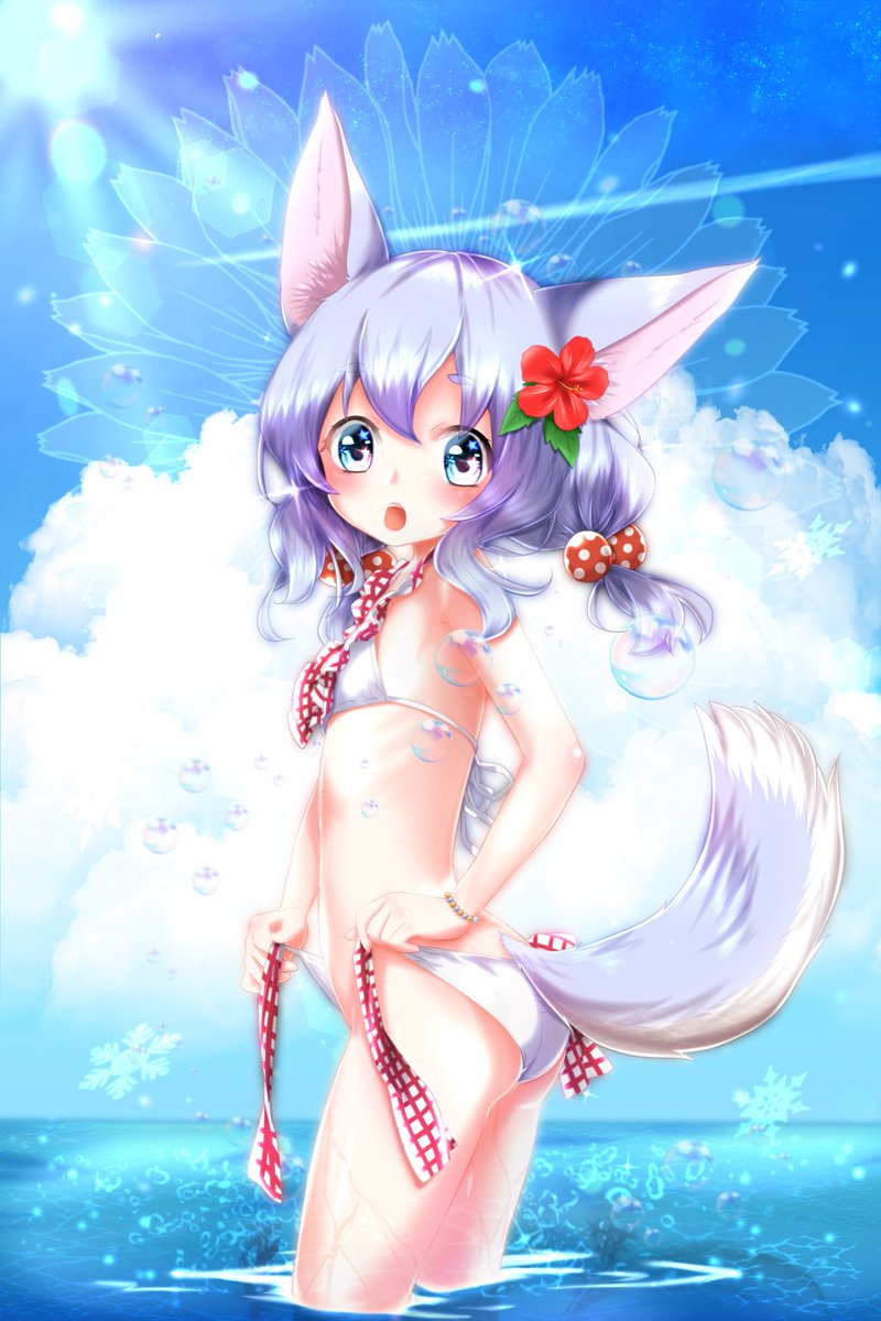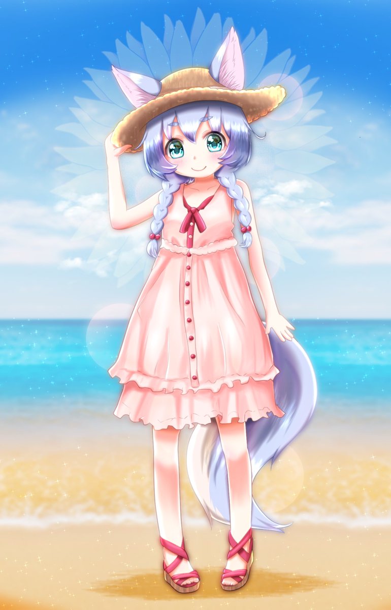 #白猫キャラの私服コレクション 素敵な企画ありがとうございます😭✨ 来る夏をイメージした私服のコヨミちゃんで参加させて頂きます!🐺✨ 🌞🌻Summer is Coming🏖🌺 #SHOVOsキッチン #白猫お絵描き