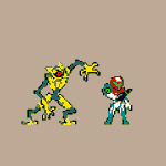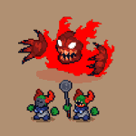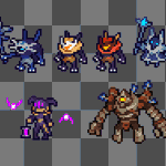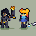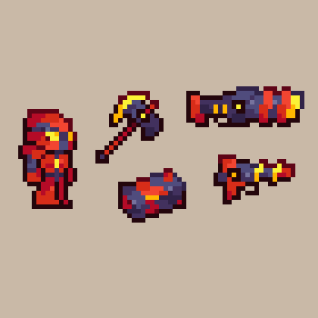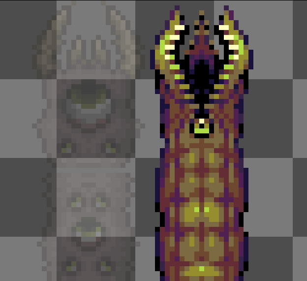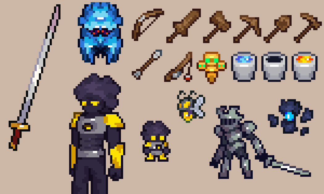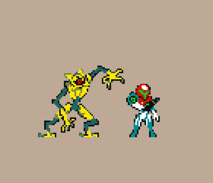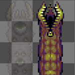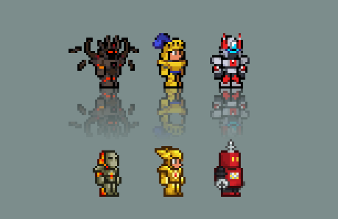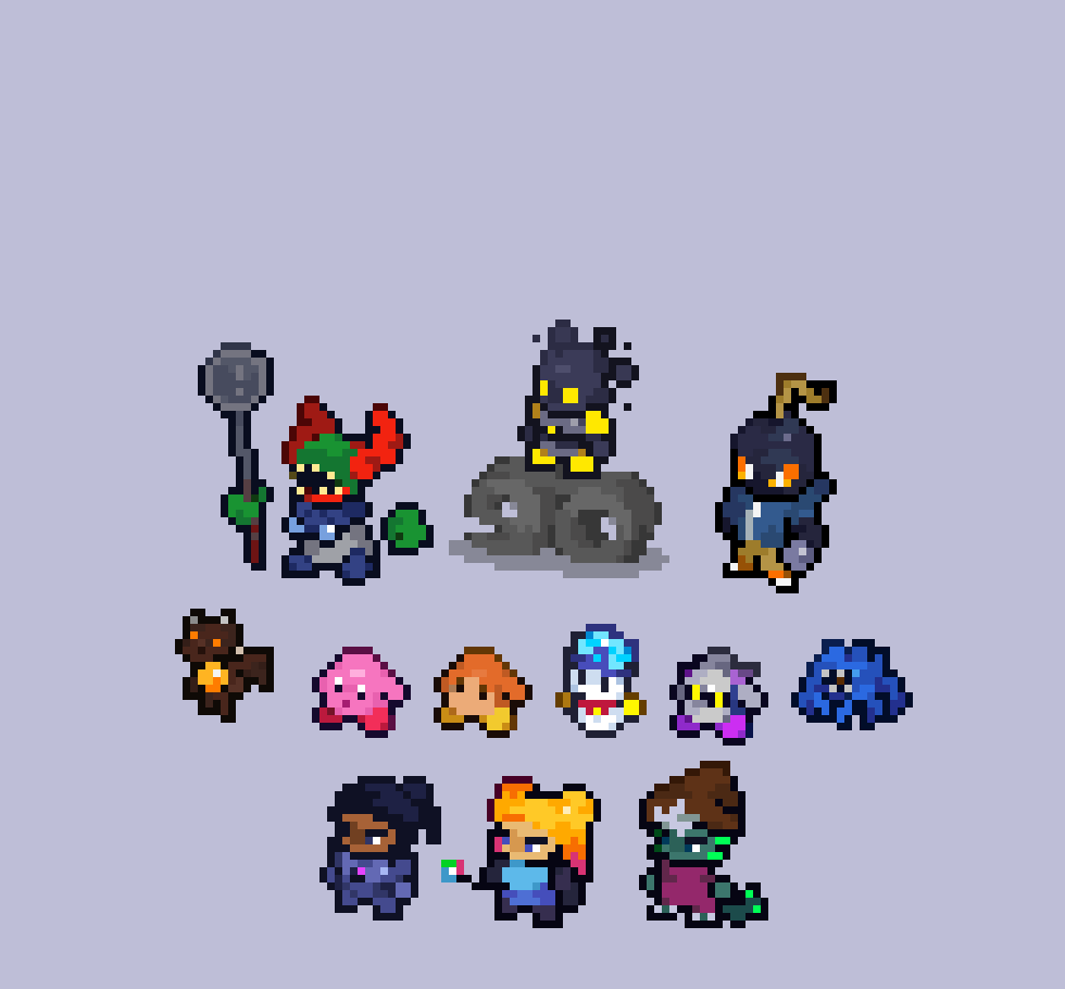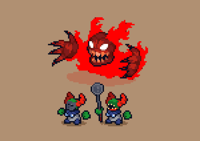 Mithrix from Risk of Rain 2, the #sequel to the first one, and his brother Providence from aforementioned first one scribbled this today and it just happened to fit the @Pixel_Dailies theme, Providence was kinda just an afterthought #pixelart #riskofrain #ドット絵 #pixel_dailies